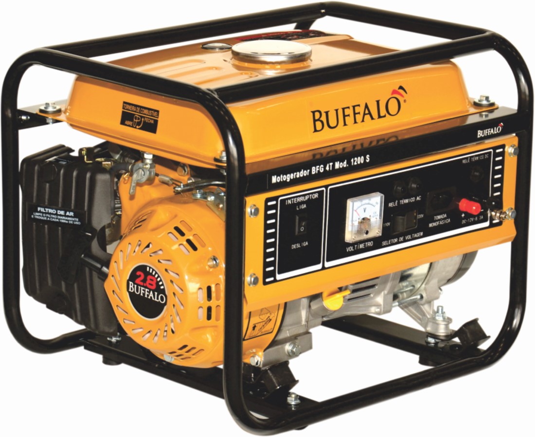 Os Geradores Buffalo Proporcionam Segurança De Energia Onde Você Precisar, Tenha Essa Força. O Gerador Bfg 1200, É Equipado Com Motor 2,8 Cv Gasolina, Fornece 1,0 Kw De Potência Nominal Possui Chave Seletora De Tensão (110V Ou 220V), É Ideal Para Ser Usado Em Casa, No Trabalho, Em Momentos De Lazer Ou No Campo. Código:60332 Tipo:Gasolina 4T - Refrigerado a Ar Potência do Motor (Cv)(KW/Rpm):2,8 (2,1/3600) Cilindrada (cm³):87 Óleo Lubrificante (L/tipo):0,4 / SAE 20W50 Combustível (L/tipo):6,0 / Gasolina Comum Consumo Médio (L/h):0,6 Pressão Sonora a 7m (dBA):67,0 Sistema de Alimentação (Tipo):Carburador (Bóia) Sistema de Ignição (Tipo):Eletrônica (CDI) Sistema de Partida (Tipo):Manual Sistema de Lubrificação (Tipo):Salpico Filtro de Ar (Tipo):Espuma Alternador (Tipo):Monofásico Tensão de Saída (V):115/230 Frequência (Hz):60,0 Potência Máxima (KW/KVA):1,2 / 1,2 Potência Nominal (KW/KVA):1,0 / 1,0 Disjuntor (A):5,0 Fator de Potência (cos φ):1,0 Carregador de Baterias (Tipo):12V DC / 8A Controle de Tensão (Tipo):Capacitor sem Escovas Observações:Seletor de Tensão Acessórios que acompanham o item: Chave de Vela, manual de instruções e relação de assistentes técnicos.