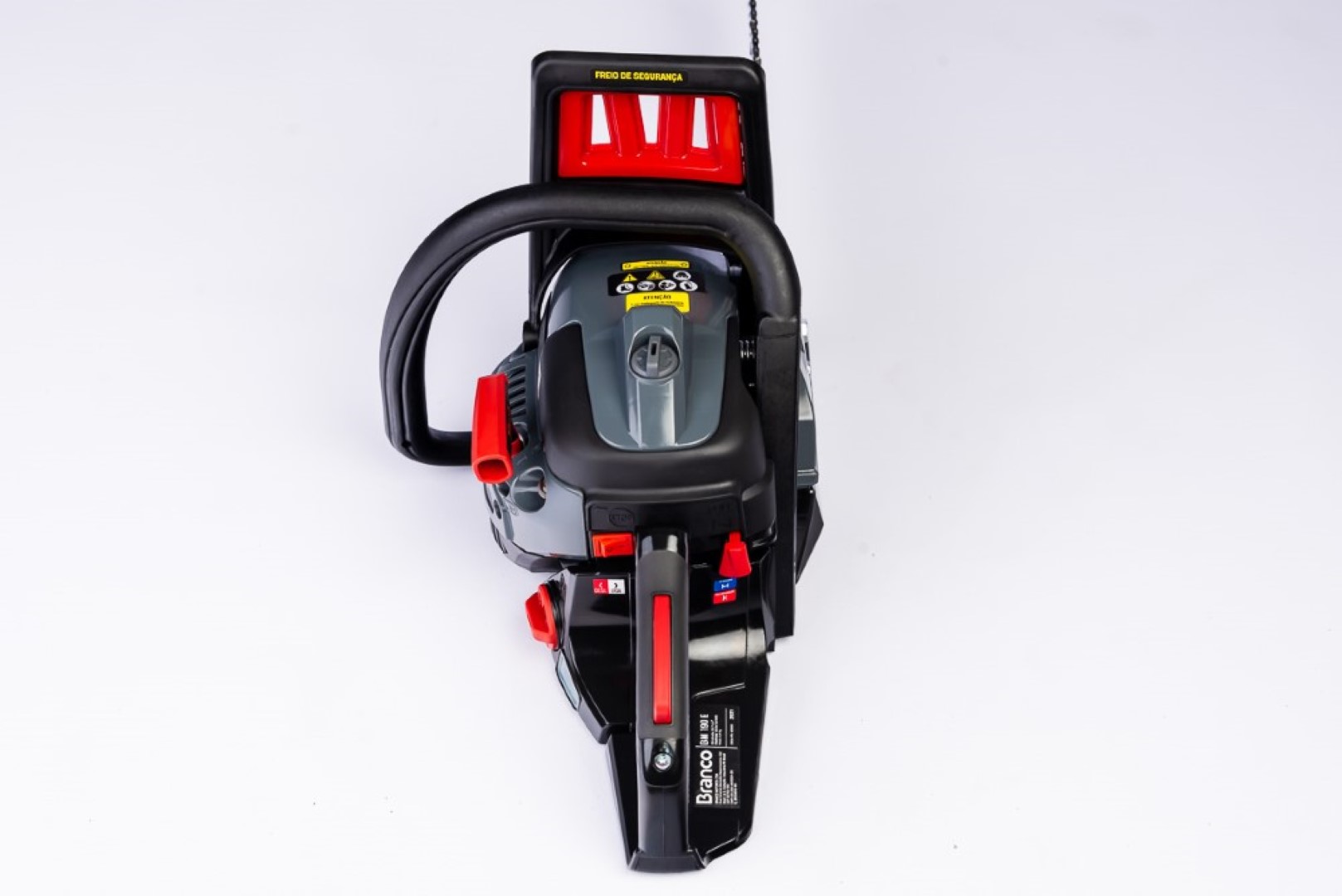 Trazendo toda eficiência e qualidade da Branco Motores, a Linha Elite conta com equipamentos profissionais e chega com suas motosserras de alta potência.DADOS TÉCNICOS - MOTORMotor: 2T - MonocilíndricoPotência motor: 1,9 cv (1,4 kW)Cilindradas: 34,7 ccRotação máxima: 12000 rpmRotação em potência máxima: 12000 rpmRotação marcha lenta: 3000 rpmCombustível (Gasolina:Óleo): 40:1 (Semi-sintético)Tipo do carburador: WalbroCapacidade do tanque: 0,41 LCapacidade de óleo: 0,28 LBomba de óleo: AjustávelTipo do óleo da corrente:Lubrificante paracorrente de motosserrade boa qualidadeTipo do filtro de ar: Filtro de feltroNível de ruído: Lpa = 102,8 dBALwa = 109,6 dBAPartida: Manual DADOS TÉCNICOS - SERRATamanho do sabre: 14"Tipo de ponta do sabre: Laminado - Ponta rolanteN° de dentes pinhão: 6Corrente: Oregon®Sabre: Oregon®Passo / Calibre: 3/8” X .050" 53 dentesde tração DADOS LOGÍSTICOSDimensão (Produto) CxLxA: 420 x 260 x 285 mmDIFERENCIAIS- Fácil acesso para manutenção- Corrente e sabre Oregon®- Empunhadura emborrachada- Sistema de trava com porca aranha ACESSÓRIOS- Manuais do usuário- Corrente- Sabre- Capa do sabre- Copo medidor- Kit ferramenta