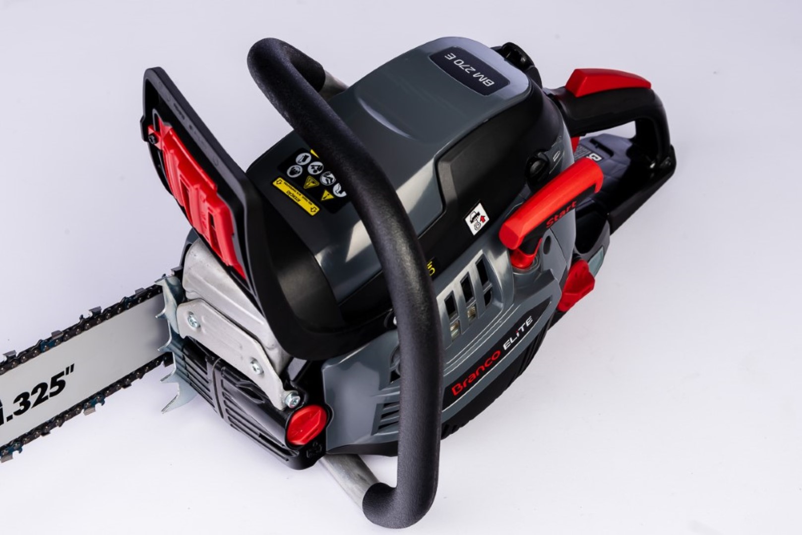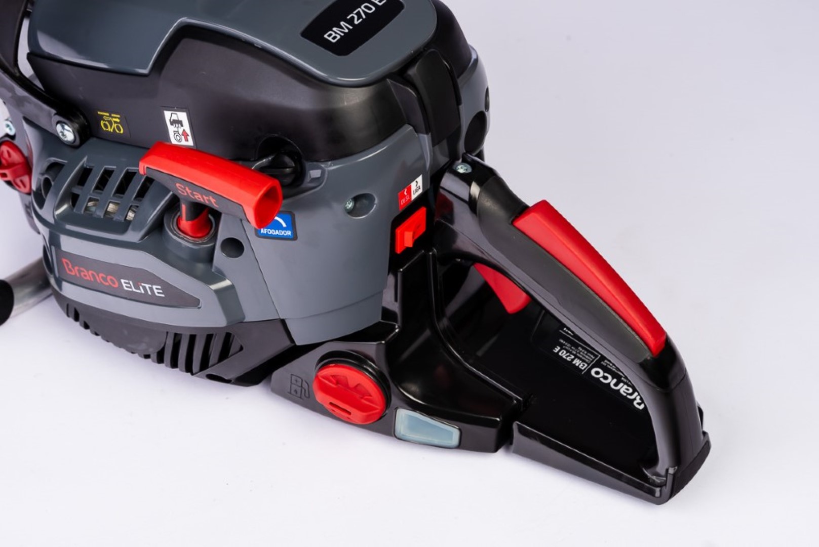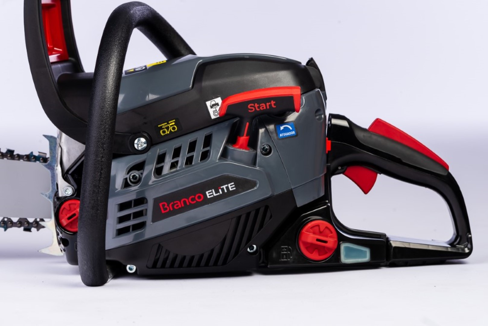 Trazendo toda eficiência e qualidade da Branco Motores, a Linha Elite conta com equipamentos profissionais e chega com suas motosserras de alta potência.DADOS TÉCNICOS - MOTORMotor: 2T - MonocilíndricoPotência motor: 2,7 cv (2,0 kW)Cilindradas: 45,4 ccRotação máxima: 12000 rpmRotação em potência máxima: 12000 rpmRotação marcha lenta: 3200 rpmCombustível (Gasolina:Óleo): 40:1 (Semi-sintético)Tipo do carburador: WalbroCapacidade do tanque: 0,52 LCapacidade de óleo: 0,25 LBomba de óleo: AjustávelTipo do óleo da corrente: Lubrificante para corrente de motosserra de boa qualidadeTipo do filtro de ar: Filtro de feltroNível de ruído: Lpa = 101,8 dBALwa = 109,3 dBAPartida: Manual DADOS TÉCNICOS - SERRATamanho do sabre: 16"Tipo de ponta do sabre: Laminado - Ponta rolanteN° de dentes pinhão: 7Corrente: Oregon®Sabre: Oregon®Passo / Calibre: .325” X .058" 66 dentes de tração DADOS LOGÍSTICOSDimensão (Produto) CxLxA: 430 x 230 x 300 mm DIFERENCIAIS- Fácil acesso para manutenção- Corrente e sabre Oregon®- Empunhadura emborrachada- Sistema de trava com porca aranha ACESSÓRIOS- Manuais do usuário- Corrente- Sabre- Capa do sabre- Copo medidor- Kit ferramenta