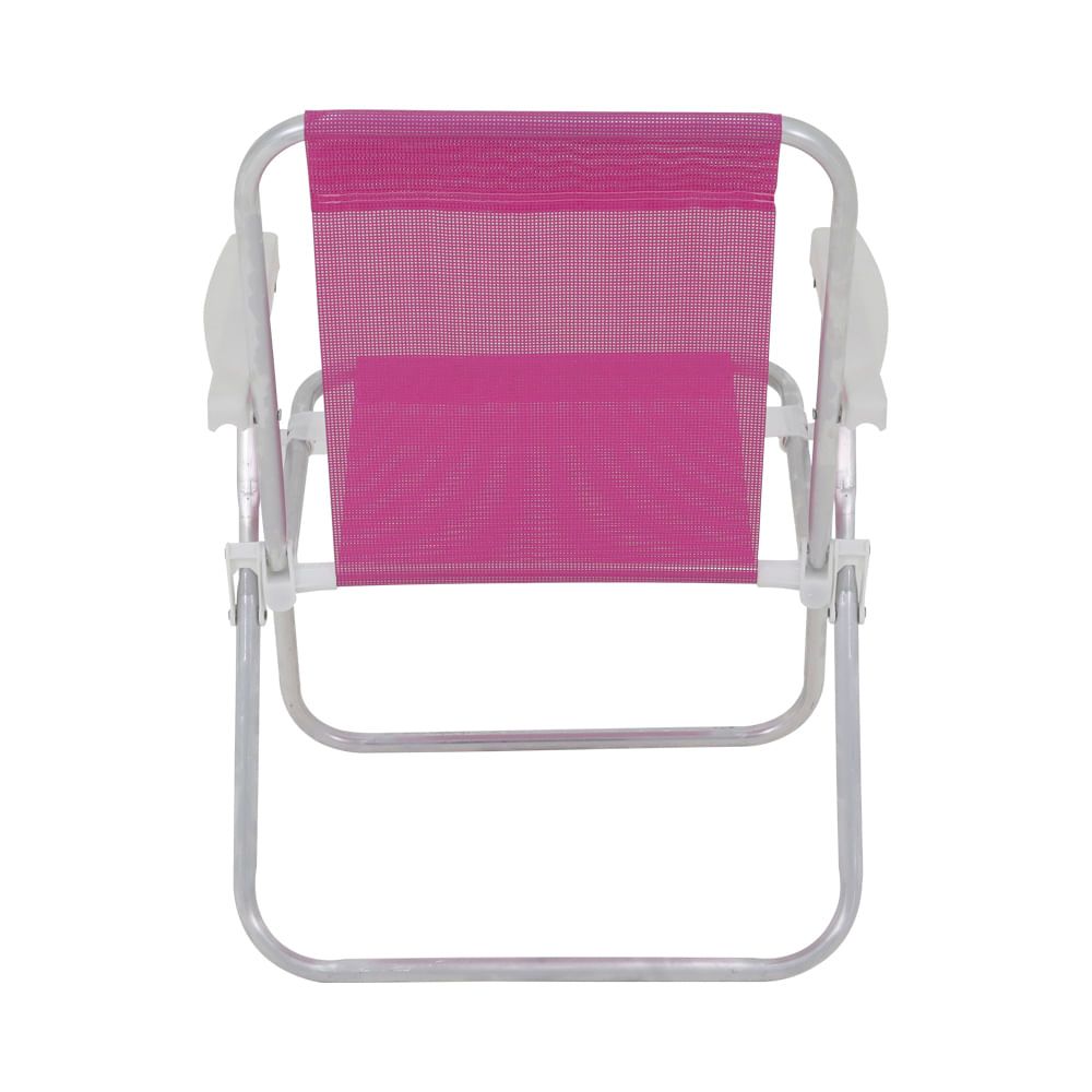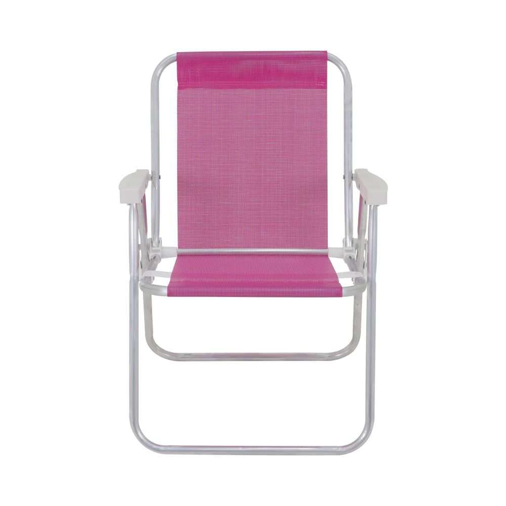 Cadeira Alta Lazy · Tela 100% Poliéster com revestimento em PVC· Estrutura em Alumínio· Apoios de braço em Polipropileno· Dobrável· Leve e fácil de transportar· Mais praticidade e confortoEspecificações técnicasPeso Suportado da Cadeira: 110 KgMedidas da Cadeira: 54 cm x 53 cm x 71 cmAltura do Assento: 35 cmReclinável: SimEstrutura: AlumínioApoio para os Braços: SimDobrável: SimCor: RosaGarantia: 3 MesesMaterial:Poliéster, PVC, Alumínio e Polipropileno