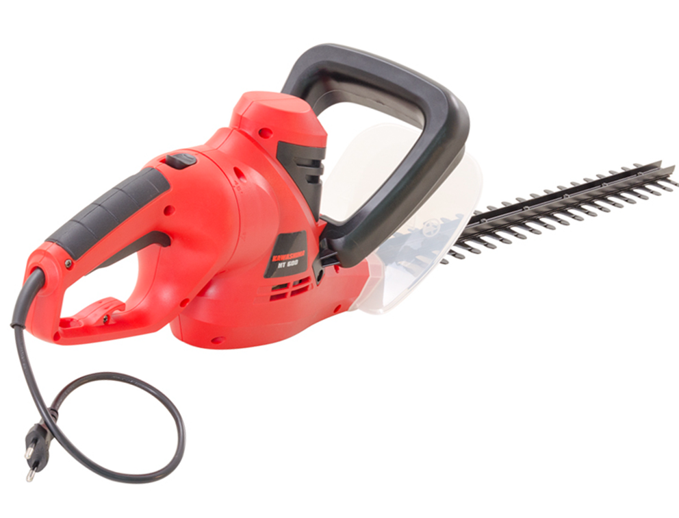 APARADOR DE CERCA VIVA KAWASHIMA HT 600 ELÉTRICO 220V TIPO: Aparador de cerca viva elétrico DIMENSÕES: 1030X210X145 mm PESO LÍQUIDO: 3,5 kg CARACTERÍSTICAS: O equipamento é desligado em aproximadamente 1 segundo caso o operador solte a manopla de freio MANOPLA: Ajustável 180 graus TIPO DE LÂMINA: 1 lâmina dupla com dentes de duplo corte COMPRIMENTO DA LÂMINA: 20" (508 mm) FREQUÊNCIA: 60 HZ POTÊNCIA: 600W LARGURA DO CORTE: 16 mm