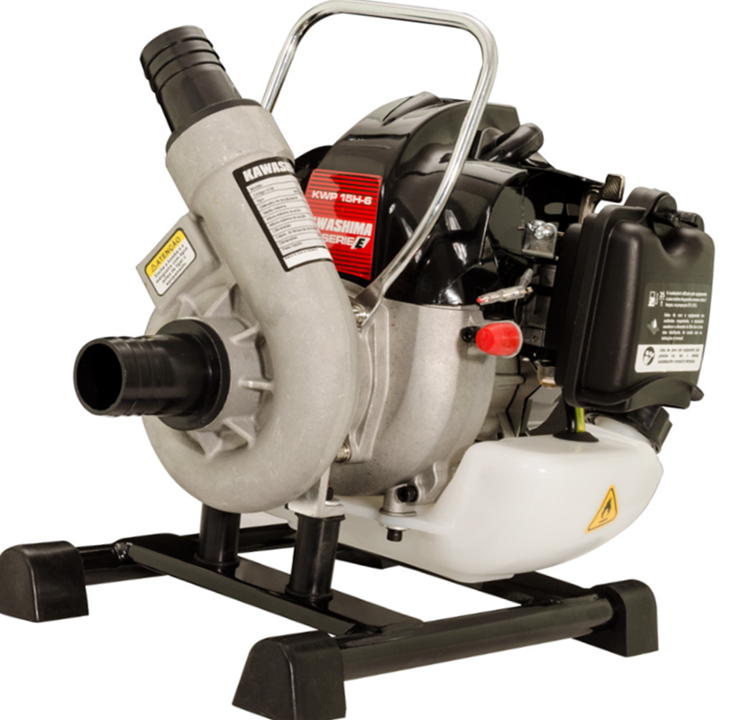 MOTOBOMBA CENTRÍFUGA KWP 15H-6 TIPO: Motobomba a gasolina, para água limpa CAPACIDADE DO TANQUE DE COMBUSTÍVEL: 980 ml DIÂMETRO DE SUCÇÃO/SAÍDA: 1.1/2"x1" // 1.1/2"x1.1/2" ALTURA TOTAL DE ENVIO: 70 m ALTURA TOTAL DE SUCÇÃO: 7 m VAZÃO MÁXIMA: 20 m³/h MOTOR: Kawashima série E TIPO DO MOTOR Monocilíndrico, 2T, refrigerado a ar CILINDRADA: 62cc SISTEMA DE PARTIDA: Manual, autorretrátil DIMENSÕES: 300x290x330 mm PESO LÍQUIDO: 6,5 kg ACOMPANHAM: Filtro de sucção, conexões de entrada e saída, abraçadeiras