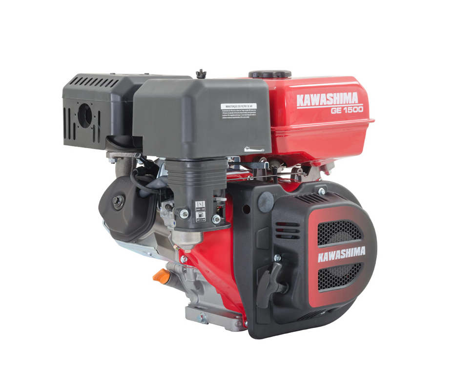 MOTOR ESTACIONÁRIO KAWASHIMA GE 1500 15 HP - GASOLINA TIPO: Monocilíndrico, 4T, Horizontal , refrigerado a ar, OHV, Gasolina DIÂMETRO X CURSO: 90X66 mm CILINDRADA: 420cc POTÊNCIA MÁXIMA: 15 HP TAXA DE COMPRESSÃO: 8,5:1 ROTAÇÃO MÁXIMA: 4000prm TORQUE MÁXIMO: 25,4 N.m 2500 rpm EIXO: 25,4 mm, chavetado REDUTOR DE ROTAÇÃO: Não FILTRO DE AR: Seco, com duplo elemento SISTEMA DE PARTIDA: Manual, autorretrátil ÓLEO DE LUBRIFICAÇÃO: SAE 15W-40 CAPACIDADE DO CÁRTER: 1,1L SENSOR DE NÍVEL DE ÓLEO: Sim CAPACIDADE DO TANQUE DE COMBUSTÍVEL: 6,7 L CONSUMO MÁXIMO DE COMBUSTÍVEL: 374 g/kW/h DIMENSÕES: 465x413x440 mm PESO LÍQUIDO: 32 kg