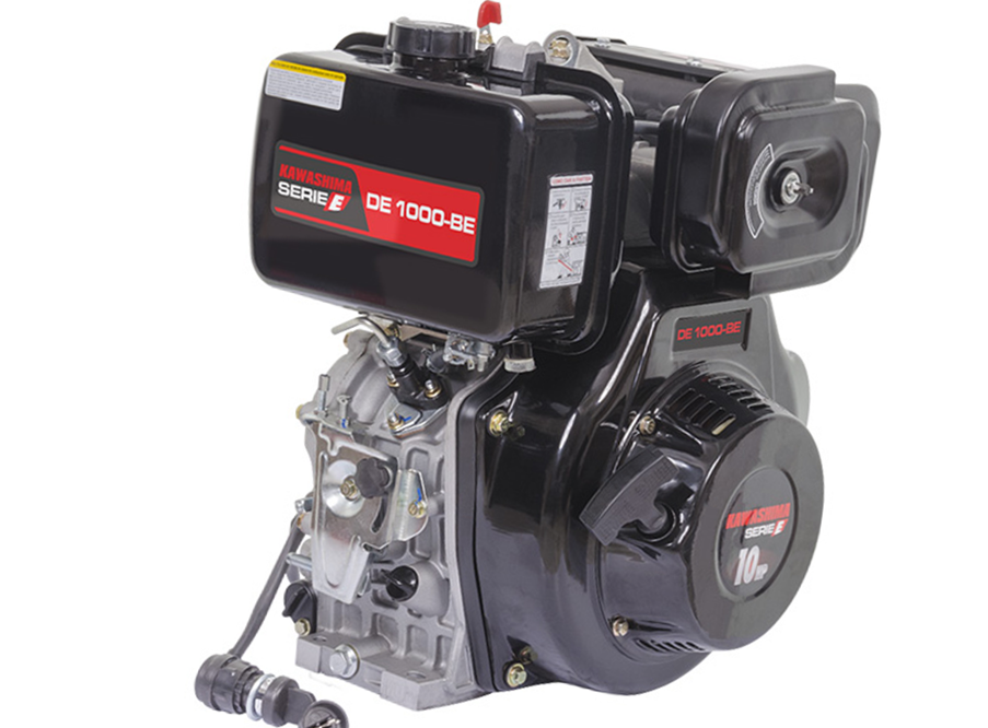 MOTOR ESTACIONÁRIO KAWASHIMA SÉRIE E DE 1000-BE 10 HP DIESEL - PARTIDA ELÉTRICA TIPO: Monocilíndrico, 4T, horizontal, refrigerado a ar, diesel SISTEMA DE REFRIGERAÇÃO: Refrigerado a ar DIÂMETRO X CURSO: 86x72 mm CILINDRADA: 418cc POTÊNCIA MÁXIMA: 10 HP TAXA DE COMPRESSÃO: 19:1 ROTAÇÃO MÁXIMA: 3600prm TORQUE MÁXIMO: 18,7 N.m EIXO: 25,4 mm, chavetado REDUTOR DE ROTAÇÃO: Não FILTRO DE AR: Seco SISTEMA DE PARTIDA: Elétrico (12V - 17A) e Manual ÓLEO DE LUBRIFICAÇÃO: SAE 20W-40 CAPACIDADE DO CÁRTER: 1,65 L CAPACIDADE DO TANQUE DE COMBUSTÍVEL: 5,5 L CONSUMO MÁXIMO DE COMBUSTÍVEL: 270g/kw/h DIMENSÕES: 441x417x494 mm PESO LÍQUIDO: 50kg