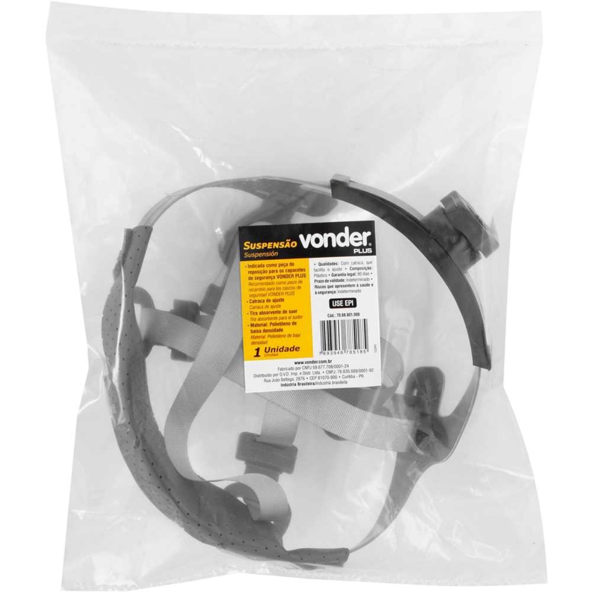 Marca: VonderConteúdo da embalagem:1 Suspensão para capacete.Destaques e diferenciais:Possui catraca de ajuste e tira absorvente de suor, proporcionando maior conforto na utilização.Aplicações e dicas de uso:Indicada como peça de reposição para os capacetes de segurança Vonder Plus. Possui a função de amortecer a pressão sobre a cabeça quando utilizada em um capacete e bem fixada ao mesmo, no caso de queda de objetos sobre o usuário.Detalhes TécnicosMaterial (tipo/composição): Polietileno de baixa densidade Catraca (sim/não): Sim Modelo (capacete): Vonder Plus Massa aproximada (peso) (kg): 0,095 kg Garantia - E (CDC):Garantia legal: 90 dias