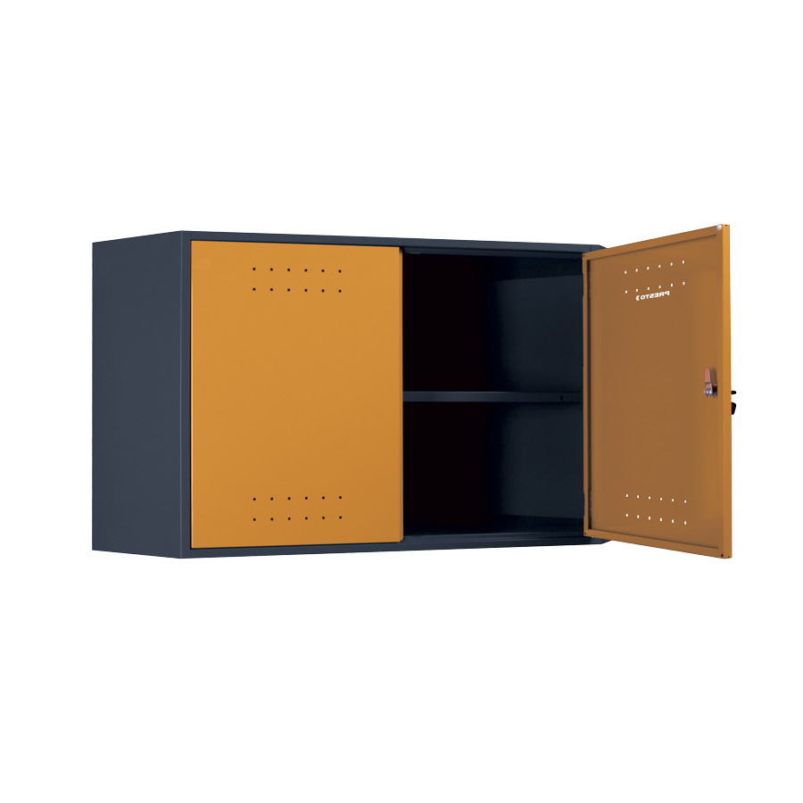 Cod. Fornecedor: 90011Marca: Presto DescriçãoArmário Aéreo de Canto em aço com encaixe perfeito em cantos que proporciona ótimo aproveitamento de espaço. O móvel compõe a Presto Ábile, linha de Organizadores Modulares componíveis entre si, que podem ser configurados de maneira flexível e versátil, possibilitando diversas combinações e o melhor aproveitamento do espaço disponível. Vantagens Componível com todos itens da linha de mobiliário modular Presto ÁbileResistente: produzido em chapa de açoVentilação nas portasDobradiças internasExcelente custo benefícioDurabilidade: tratamento anticorrosivo e pintura eletrostática a póFechadura com chaveBatente de silicone na portaFuros para fixação na parede Detalhes Técnicos Largura: 78 cmAltura: 57,5 cmProfundidade: 78 cmPeso: 17,88kgCarga máxima: 15kg distribuídos por prateleira