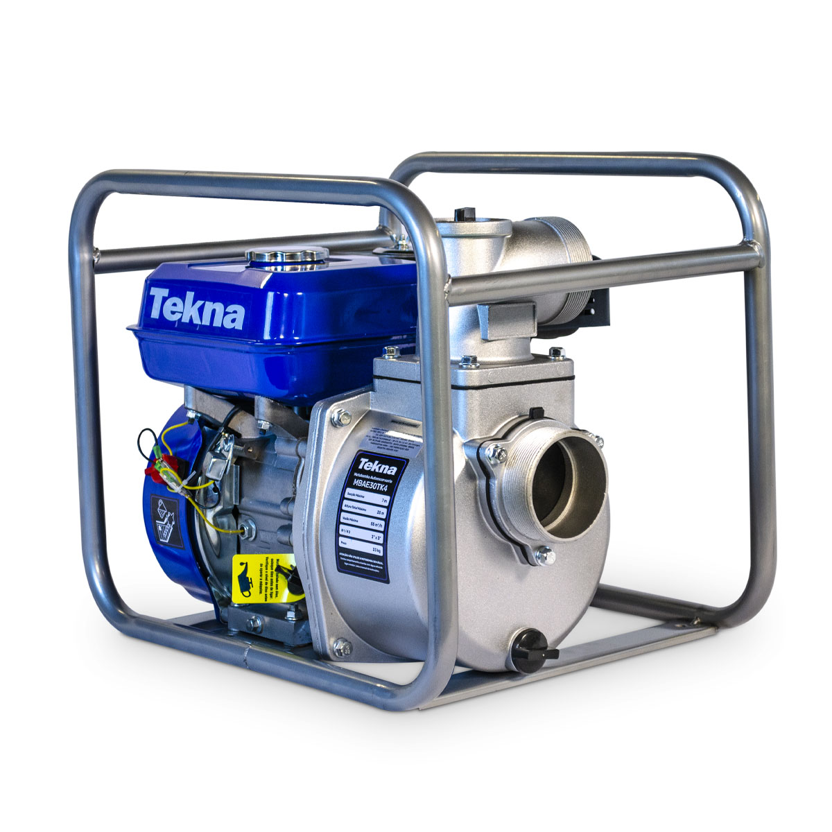 Código: MBAE30TK4Marca: Tekna• Motor 4 Tempos• Cilindrada 196 cc• Diâmetro de Sucção e Recalque 3”x 3”• Altura Máxima 25 m.c.a.• Vazão Máxima 55 m³/h• Sucção Máxima 7 m.c.a.A Motobomba Autoescorvante a Gasolina Tekna MBAE30TK4 é equipada com motor 4 tempos de 6.5 HP de potência e 196 cilindradas, que emite menos poluente e oferece alta performance. • Bomba Autoescorvante• Com Quadro• Corpo da bomba em alumínio Informações AdicionaisA Motobomba portátil MBAE30TK4 é adequada para uso frequente com água limpa. Com diâmetro de sucção e recalque 3”x 3”, tem capacidade de transferir grandes volumes de água, sendo ideal para uso em fazendas, praias e piscinas, na transferência de água em pequenas distâncias, na captação em rios, lagos e poços. Oferece uma excelente autonomia, potência, vazão e sucção, com peças de baixa manutenção. Seu kit de acessórios conta com filtro e abraçadeiras.