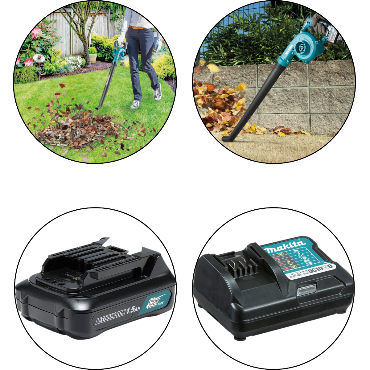 Soprador de Ar Força 1.6N Velocidade do Ar 56 m/s Sem Fio 12V Com Bateria Carregador UB101DZC Makita