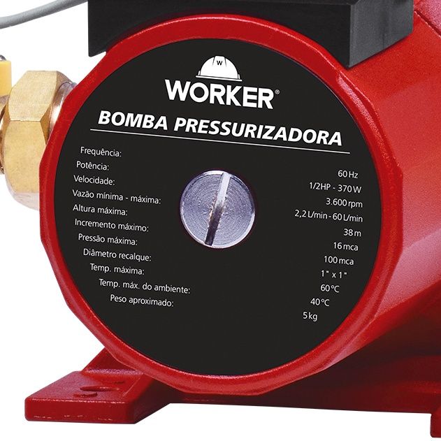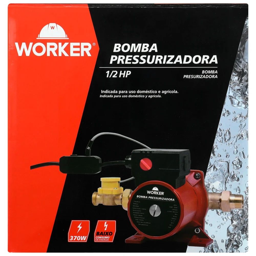 Código do Fornecedor: 244988 Marca: Worker Conteúdo da embalagem: 1 Bomba Pressurizadora 1/2Hp 127V 1X1'' Worker A Bomba Pressurizadora da Worker foi desenvolvida para melhorar o controle da pressão da água, no qual, o seu acionamento automático auxilia na correção da pressão e acaba direcionamento para a direção correta. Além disso, o equipamento conta com 3 potências, onde ajuda na velocidade ideal, além disso é uma ótima opção para quem procura soluções eficientes e confiáveis para o aumento da pressão de água em sistemas de abastecimento. Com potência de 370W e uma taxa de fluxo de até 1,5 m³/h, esta bomba é capaz de suprir a demanda de uma residência ou pequeno comércio. Especificações: Excelente para utilizar em ambientes domésticos e agrícolasO seu acionamento pode ser feito manualmente ou automaticamente por meio do fluxostatoPossui 3 níveis de potênciaO resfriamento do motor é realizado através da águaSeu material é durável e resistente a corrosão Características: Potência: 1/2Hp – 0,37kWVazão mínima: 2,2 litros por horaVazão máxima: 40 litros por horaAltura máxima: 30 metrosIncremento máximo: 16mcaPressão máxima: 100mcaDiâmetro de entrada e saída: (recalque): 1”x1”Temperatura máxima: 60°CTemperatura máxima do ambiente: 40°C Garantia: 3 meses