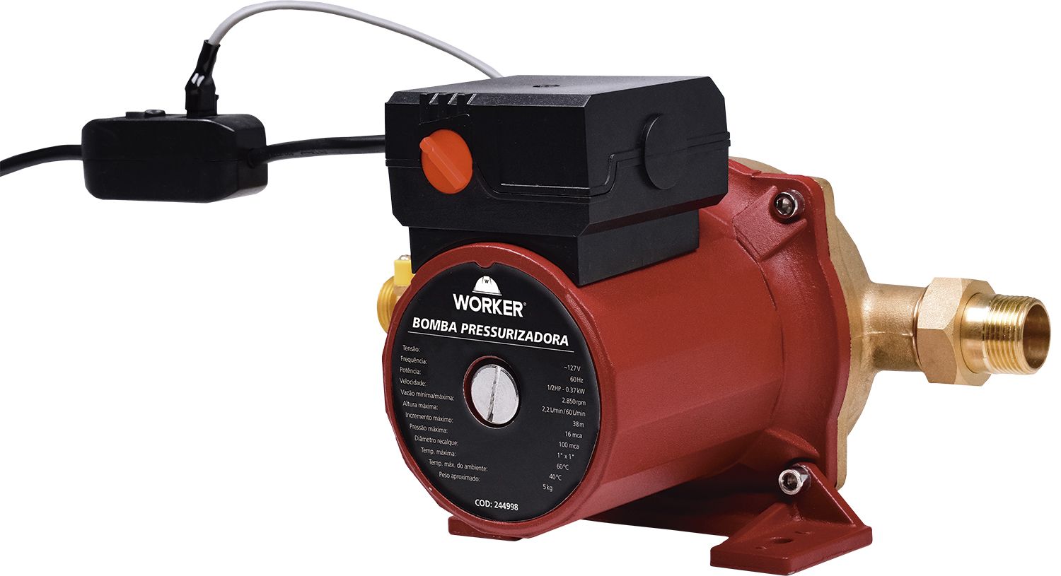 Código do Fornecedor: 245038 Marca: Worker Conteúdo da embalagem: 1 Bomba Pressurizadora 1/2Hp 220V 1X1'' Worker A Bomba Pressurizada com 3 Níveis 100mca 1/2Hp 220V Worker é um equipamento que utiliza energia elétrica para bombear água, aumentando a pressão e melhorando o desempenho de sistemas hidráulicos. Com três níveis de pressão, é possível ajustar o fluxo de água de acordo com a necessidade do usuário, garantindo maior eficiência e economia de energia. Com potência de 1/2Hp e tensão de 220V, é indicada para uso em residências, comércios e indústrias de pequeno porte. Seu design compacto e fácil instalação tornam a Bomba Pressurizada Worker uma solução prática e eficiente para quem busca mais qualidade e conforto no abastecimento de água. Foi desenvolvida para melhorar o controle da pressão da água, no qual, o seu acionamento automático auxilia na correção da pressão e acaba direcionamento para a direção correta. Características: Potência: 1/2Hp – 0,37kWVazão mínima: 2,2 litros por horaVazão máxima: 40 litros por horaAltura máxima: 30 metrosIncremento máximo: 16mcaPressão máxima: 100mcaDiâmetro de entrada e saída: (recalque): 1”x1”Temperatura máxima: 60°CTemperatura máxima do ambiente: 40°C Especificações: Excelente para ambientes domésticos e agrícolaO seu acionamento pode ser feito manualmente ou automaticamente por meio do fluxostatoPossui 3 níveis de potênciaO resfriamento do motor é realizado através da águaSeu material é durável e resistente a corrosão Garantia: 3 meses