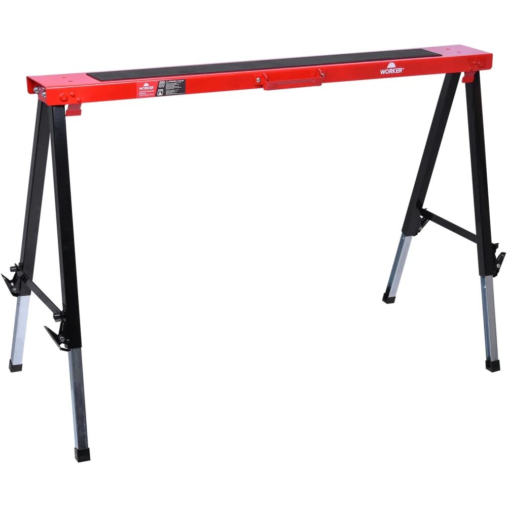 Código do Fornecedor: 964824 Marca: Worker Conteúdo da embalagem: 1 Cavalete Metálico Portátil 150Kg Worker Indicado para marcenarias, serralherias, entre outros. Ideal para montagem de mesas e bancadas, apoio para corte, entre outras aplicações. Proibido uso para sustentação de pessoas e/ou animais e como andaime. Diferenciais: Possui pernas telescópicas (com 12 posições), que proporcionam facilidade no ajuste da alturaFaixa antiderrapante em EVAPernas dobráveisAlça para transporte, que facilitam o armazenamento e transporte do produto Características Técnicas: Largura: 125 mmComprimento: 995 mmAltura mínima: 645 mmAltura máxima: 910 mmDimensões (fechado): 995mmx125mmx75 mm Garantia: 3 meses