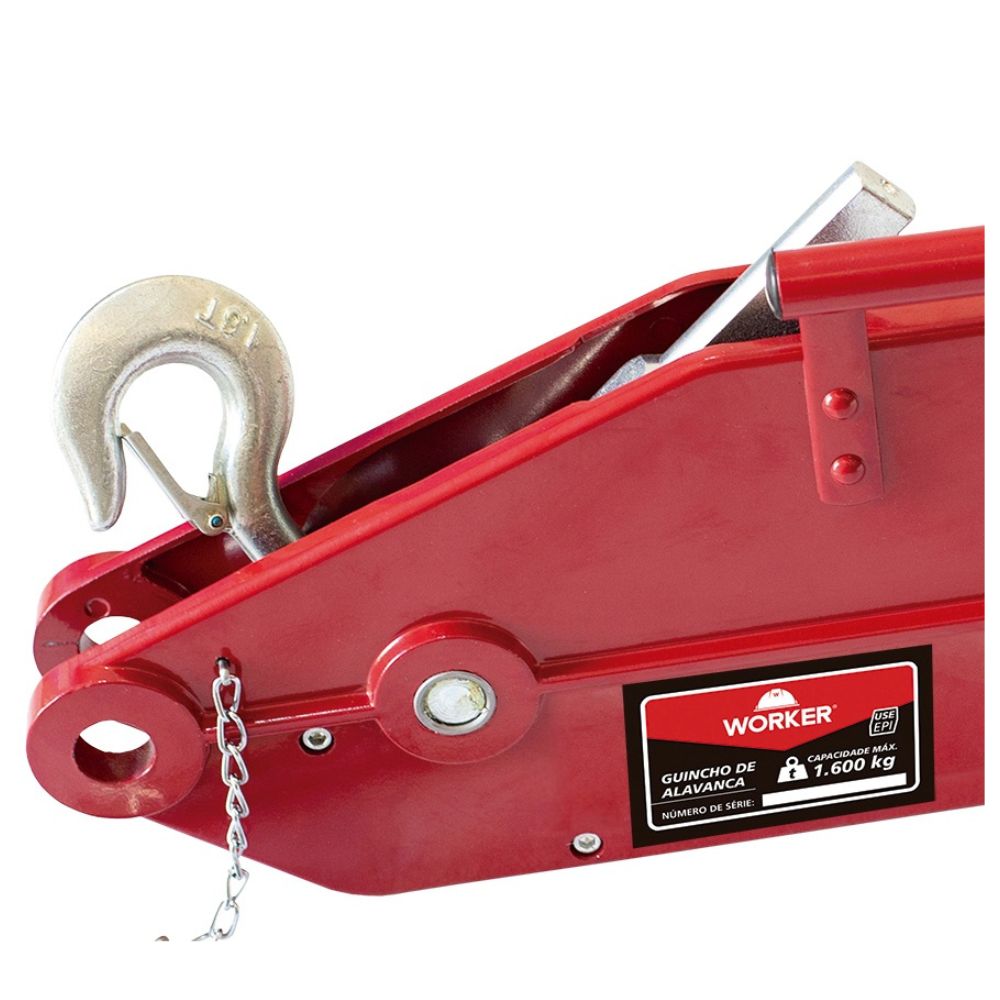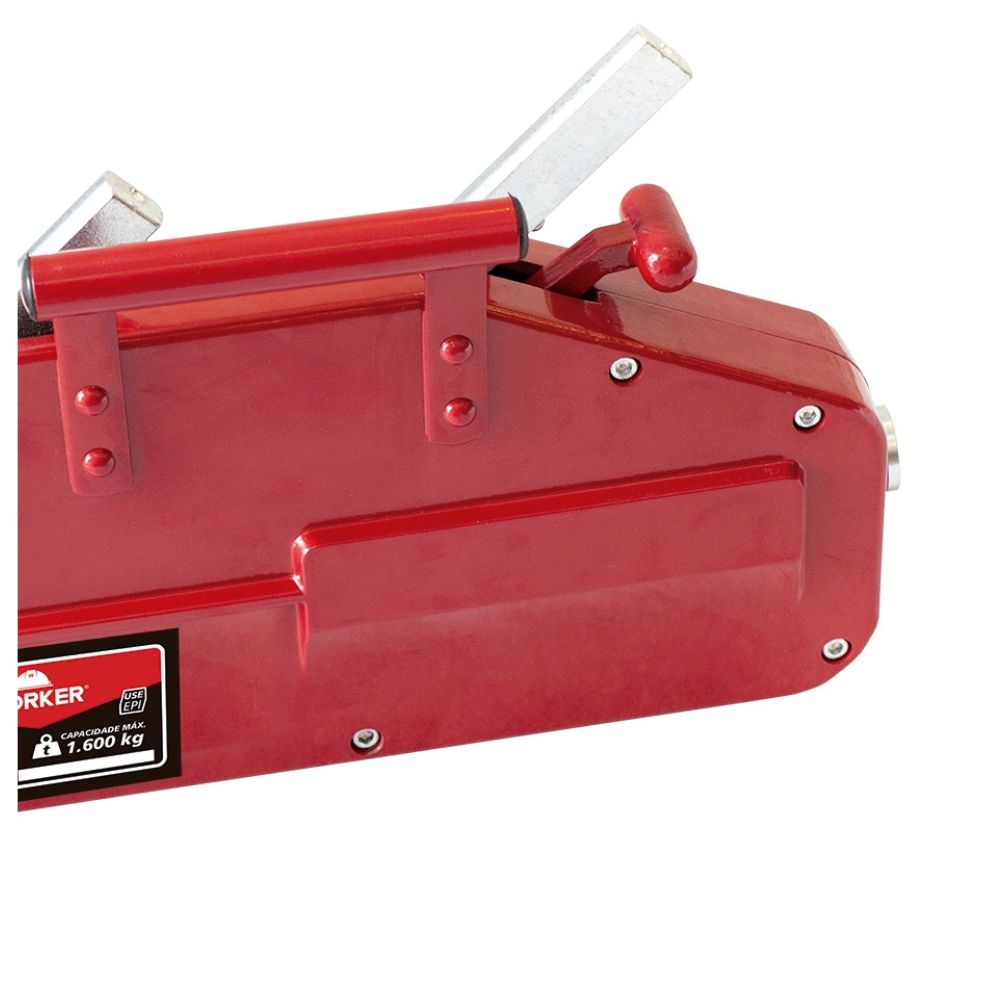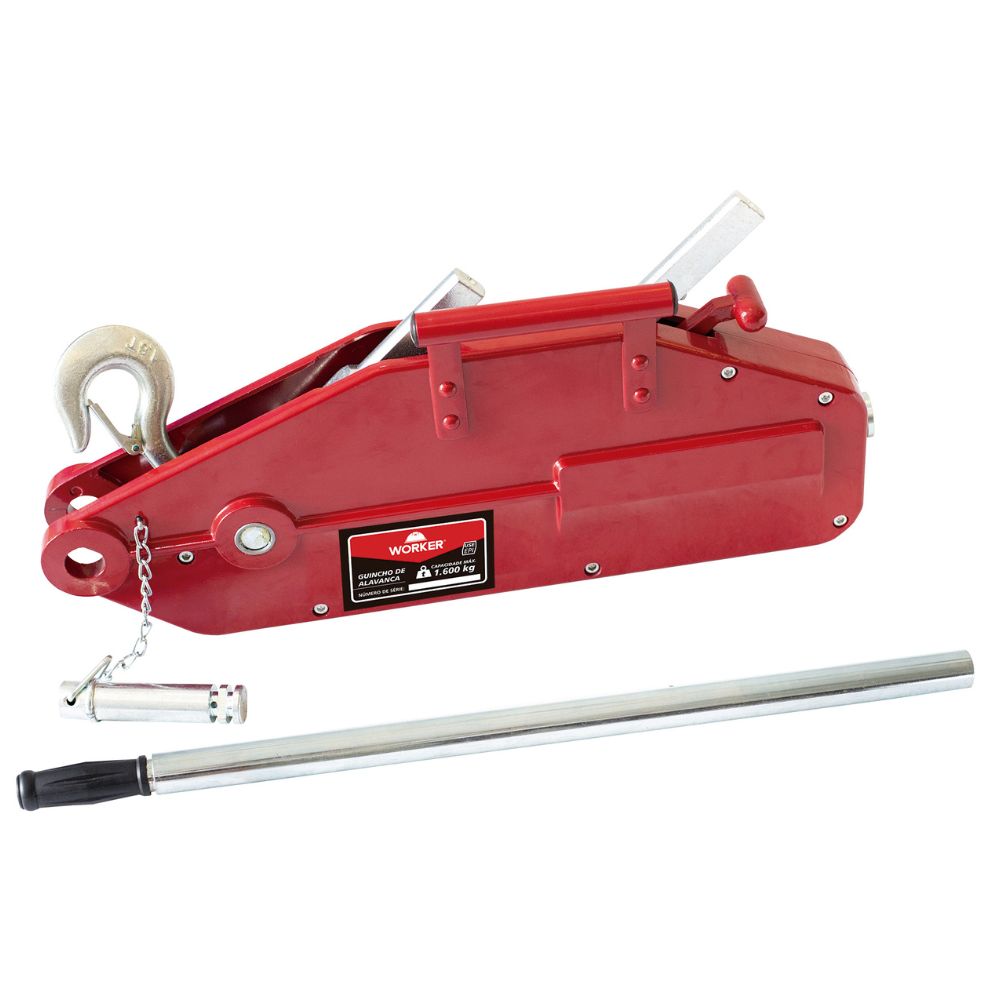 Código do Fornecedor: 901482 Marca: Worker Conteúdo da embalagem: 1 Guincho Alavanca Tirfor 1600Kg Com 20m Cabo Worker O Guincho Alavanca com Gancho de Trava 1600kg 11mm Worker é uma ferramenta útil para Arrastar e Locomover cargas pesadas. Com capacidade máxima de 1600kg, é adequado para uso em diversas atividades.Possui um gancho de trava, que proporciona maior segurança no momento do uso. Além disso, sua construção em aço de alta resistência garante durabilidade e confiabilidade. Características: Capacidade: 1600kg;Diâmetro do cabo: 11mm.Peso: 34 Kg Especificações: Guincho alavanca equipado com gancho e travaAcompanha 20m de cabo de aço 11mm 6x19 W AACI com gancho travaAlavanca de acionamentoIndicado apenas para arrastar ou locomoção de cargasCabo de Aço conforme portaria 181 de 11/04/2013 do INMETRONão possui motor elétrico Garantia: 3 meses