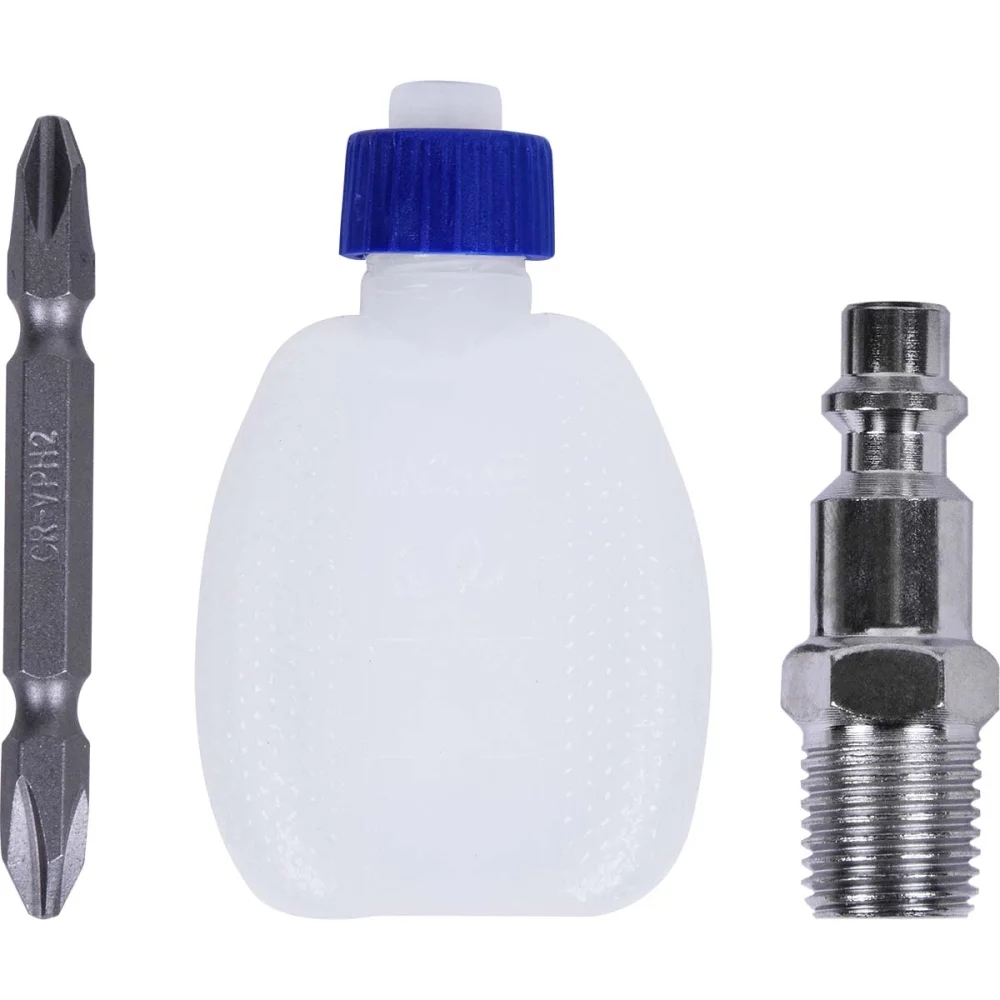 Código do Fornecedor: 993417 Marca: Worker Conteúdo da embalagem: 1 Parafusadeira Pneumática Reta 8mm 1/4'' NPT Worker A Parafusadeira Pneumática da Worker é excelente para trabalhos que necessitam evitar o movimento repetitivo, como, marcenarias, serralherias, montagens e entre outros. Especificação: Modelo compacto e ergonômicoPossui menor vibração na operaçãoMais precisos na operaçãoÓtimo para linhas de produção Características técnicas: Rotação: 9000rpmForça de trabalho: 72,2NmComprimento total: 195mmEntrada de ar: 1/4" NPTMangueira de ar: 3/8" IDConsumo médio de ar: 108 litros por minutoCompressor sugerido: 2 HpPeso: 1 Kg Acompanha: 1 Bits Garantia: 6 meses