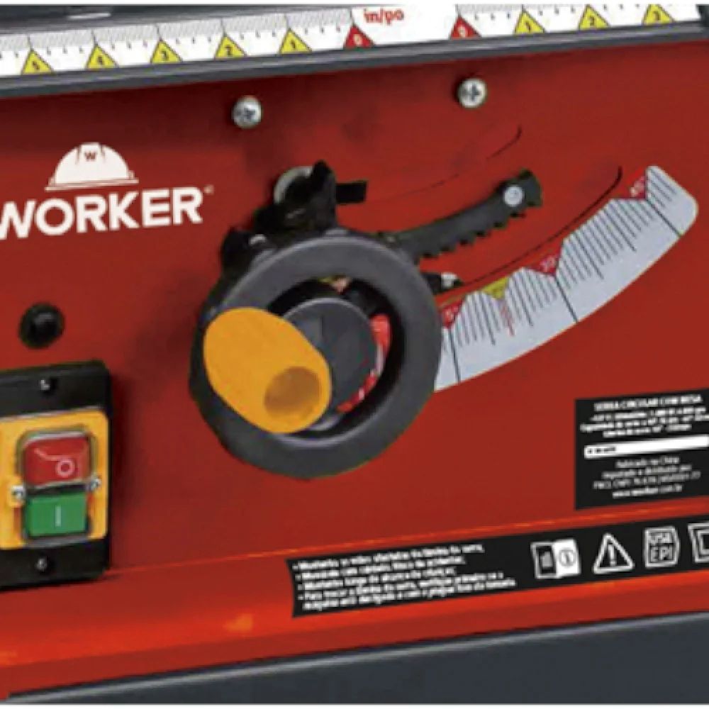 Código do Fornecedor: 977071 Marca: Worker Conteúdo da embalagem: 1 Serra Circular De Mesa 10'' 1800W 127V Worker A Serra Circular de Bancada 10" 250mm 1800W 127V Worker é uma ferramenta poderosa e versátil para trabalhos em madeira. O motor de 1800W garante desempenho robusto e constante, enquanto o design ergonômico e as características de segurança tornam a operação segura e fácil. Além disso, a mesa de trabalho resistente e ajustável oferece estabilidade e precisão durante o corte, contém regulagem de ângulo e altura da serra. Se você está procurando uma serra circular de bancada confiável e de alta qualidade, a Serra Circular de Bancada 10" 250mm 1800W 127V Worker é uma ótima escolha. Benefícios da Serra de Bancada Worker: Possui guia lateralPossui regulagem de ângulo e altura da serraEsquadroProteção de lâmina em acrílicoRegulagem do ângulo e altura da serraIdeal para cortes de madeiras e derivados Detalhes Técnicos: Voltagem: 127 VPotência: 1.800 WFrequência: 50 / 60 HzIsolação: DuplaRotação: 4.800 rpm Acompanha: 1 disco de corte diamantado de 230mm1 base de apoio lateral1 guia de corte reto1 guia de corte em ângulo2 clips para fixação1 alça1 jogo de rodas2 chaves fixas 9mm e 19mm1 chave phillips Garantia: 3 meses