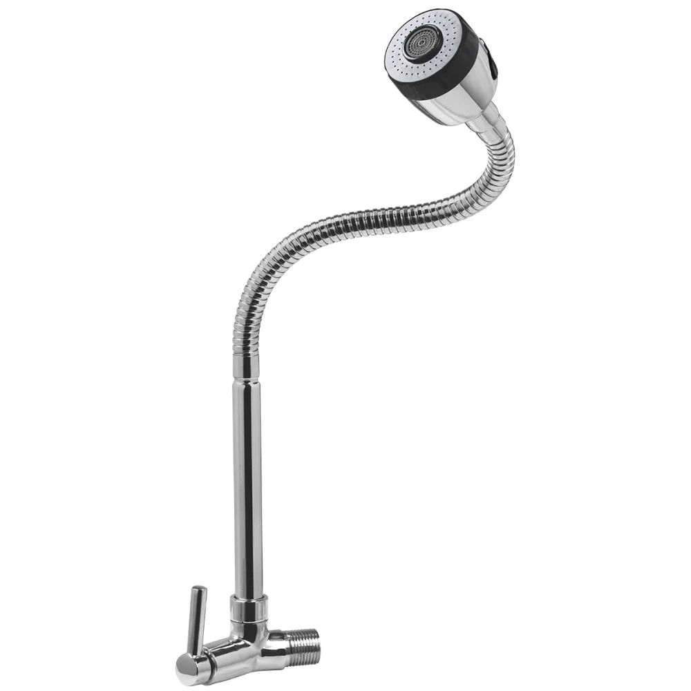 Torneira Para Cozinha Bica Flex Parede Latáo Aço Inox Abertura Rápida C60 Goumet Liege