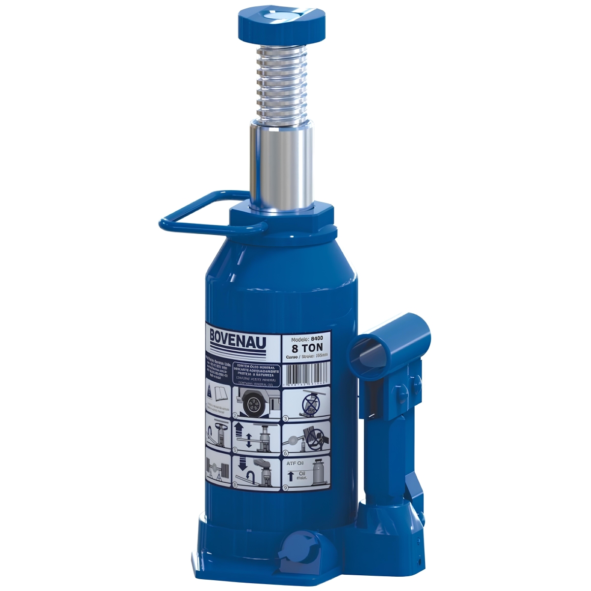 Macaco Garrafa 8 T Hidráulico MT8I Bovenau é a solução ideal para quem busca eficiência e segurança na elevação de veículos. Com a capacidade de carga de 8 toneladas, este macaco é perfeito para caminhonetes, caminhões e carretas de linha leve e pesada. A Bovenau, renomada no mercado global, oferece uma das maiores linhas de macacos hidráulicos tipo garrafa, garantindo qualidade e durabilidade. Este modelo permite uso na posição horizontal, desde que a catraca ou a bomba pneumática esteja posicionada na parte inferior, proporcionando versatilidade em diversas situações.A robustez do design do macaco Bovenau assegura uma operação segura e fácil, facilitando a troca de pneus e outras manutenções automotivas. Além disso, a construção sólida e os materiais de alta qualidade garantem uma longa vida útil, tornando-o um investimento inteligente para profissionais e entusiastas do setor automotivo.ESPECIFICAÇÕES TÉCNICAS:- Marca: Bovenau- Modelo: MT8I- Capacidade de carga: 8 toneladas- Altura de construção: 230 mm- Dimensões da base: 140x125 mm- Curso de elevação hidráulica: 155 mm- Curso de Fuso: 100 mm- Altura total: 485 mm- Comprimento da alavanca: 600 mm- Peso: 6,7 kg- Formato do macaco: Garrafa- Código universal de produto: 7898142331068ITENS INCLUSOS:- 1 Macaco Garrafa 8 T Hidráulico MT8I BovenauINSTRUÇÕES DE USO:1. Posicione o macaco sob o ponto de elevação do veículo.2. Certifique-se de que a alavanca esteja firmemente encaixada.3. Bombeie a alavanca para elevar o veículo até a altura desejada.4. Para uso horizontal, posicione a catraca ou bomba pneumática na parte inferior.5. Após o uso, libere a pressão lentamente para baixar o veículo com segurança.