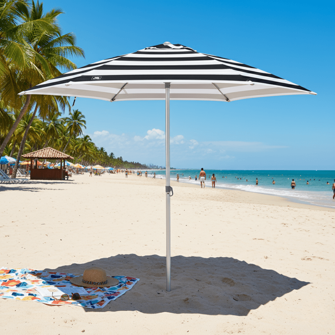 Guarda Sol Milagres 2,40 M Preto e Branco Listrado Alumínio Vareta Fibra Vidro 12755 Bel