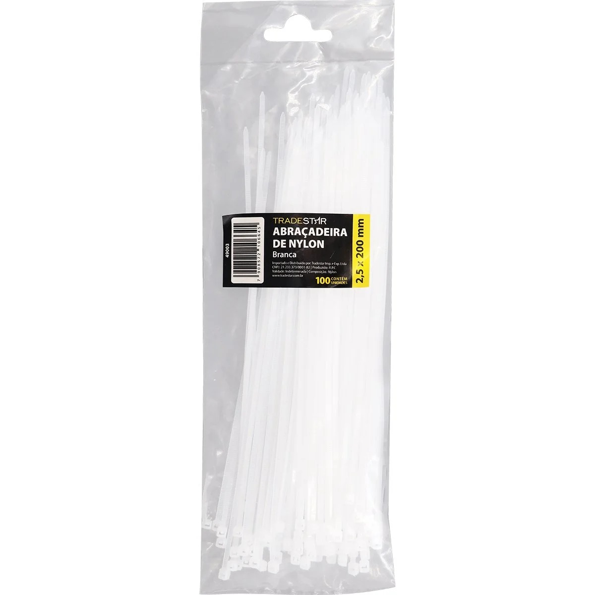 Abraçadeira Nylon 2,5 x 200 mm Branca 100 Unidades Tradestar