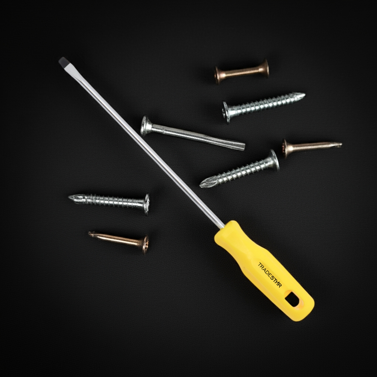 Chave Fenda Tradestar 1/4 x 8'' Cromo VanádioA Chave de Fenda Tradestar 1/4 x 8'' Cromo Vanádio é um item indispensável para qualquer profissional da área de manutenção, montagem, instalação ou para uso doméstico. Fabricada com aço Cromo Vanádio (Cr-V), material conhecido pela sua elevada resistência mecânica e durabilidade, essa ferramenta oferece desempenho confiável mesmo em trabalhos de uso intenso.Seu design equilibrado permite excelente controle, garantindo precisão no encaixe da ponta e reduzindo o risco de desgaste prematuro dos parafusos ou da própria ferramenta.O cabo anatômico proporciona conforto e firmeza na pegada, reduzindo a fadiga durante longos períodos de uso. Fabricado com material resistente, ele também oferece boa aderência, evitando escorregões e aumentando a segurança durante o trabalho. Essa característica é especialmente útil em ambientes de manutenção industrial, oficinas mecânicas, marcenarias ou instalações elétricas e hidráulicas.A haste em aço Cromo Vanádio é tratada termicamente, resultando em maior resistência à torção e melhor vida útil da ferramenta. Além disso, o acabamento polido e protegido contra oxidação ajuda a manter a qualidade da chave por mais tempo, mesmo em ambientes úmidos ou expostos a variações de temperatura.Compacta e leve, a Chave de Fenda Tradestar 1/4 x 8'' é extremamente versátil. Pode ser utilizada em reparos domésticos, montagem de móveis, manutenção automotiva, ajustes de equipamentos e em diversas outras situações. Sua construção robusta e acabamento de qualidade fazem dela uma ferramenta confiável tanto para profissionais quanto para usuários que buscam soluções eficientes para o dia a dia.Especificações- Tipo: Chave de fenda reta- Tamanho: 1/4 x 8''- Material da haste: Aço Cromo Vanádio (Cr-V)- Cabo: Anatômico com aderência reforçada- Indicação de uso: Aperto e desaperto de parafusos com fenda retaItens inclusos- 01 Chave de Fenda Tradestar 1/4 x 8'' Cromo VanádioGarantia- 03 meses com o Fabricante