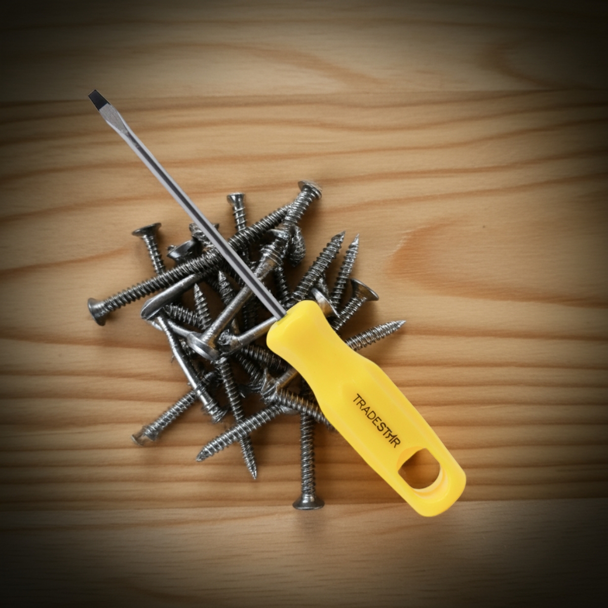 Chave Fenda Tradestar 1/8 x 3'' Cromo VanádioA Chave de Fenda Tradestar 1/8 x 3'' Cromo Vanádio é um item indispensável para qualquer profissional da área de manutenção, montagem, instalação ou para uso doméstico. Fabricada com aço Cromo Vanádio (Cr-V), material conhecido pela sua elevada resistência mecânica e durabilidade, essa ferramenta oferece desempenho confiável mesmo em trabalhos de uso intenso.Seu design equilibrado permite excelente controle, garantindo precisão no encaixe da ponta e reduzindo o risco de desgaste prematuro dos parafusos ou da própria ferramenta.O cabo anatômico proporciona conforto e firmeza na pegada, reduzindo a fadiga durante longos períodos de uso. Fabricado com material resistente, ele também oferece boa aderência, evitando escorregões e aumentando a segurança durante o trabalho. Essa característica é especialmente útil em ambientes de manutenção industrial, oficinas mecânicas, marcenarias ou instalações elétricas e hidráulicas.A haste em aço Cromo Vanádio é tratada termicamente, resultando em maior resistência à torção e melhor vida útil da ferramenta. Além disso, o acabamento polido e protegido contra oxidação ajuda a manter a qualidade da chave por mais tempo, mesmo em ambientes úmidos ou expostos a variações de temperatura.Compacta e leve, a Chave de Fenda Tradestar 1/8 x 3'' é extremamente versátil. Pode ser utilizada em reparos domésticos, montagem de móveis, manutenção automotiva, ajustes de equipamentos e em diversas outras situações. Sua construção robusta e acabamento de qualidade fazem dela uma ferramenta confiável tanto para profissionais quanto para usuários que buscam soluções eficientes para o dia a dia.Especificações- Tipo: Chave de fenda reta- Tamanho: 1/8 x 3''- Material da haste: Aço Cromo Vanádio (Cr-V)- Cabo: Anatômico com aderência reforçada- Indicação de uso: Aperto e desaperto de parafusos com fenda retaItens inclusos- 01 Chave de Fenda Tradestar 1/8 x 3'' Cromo VanádioGarantia- 03 meses com o Fabricante