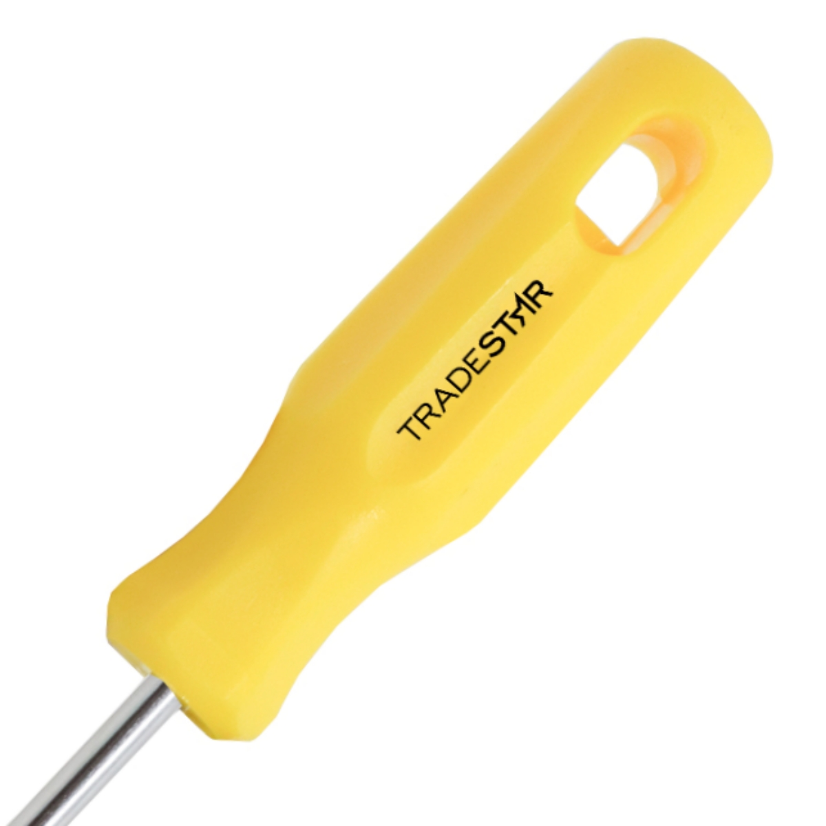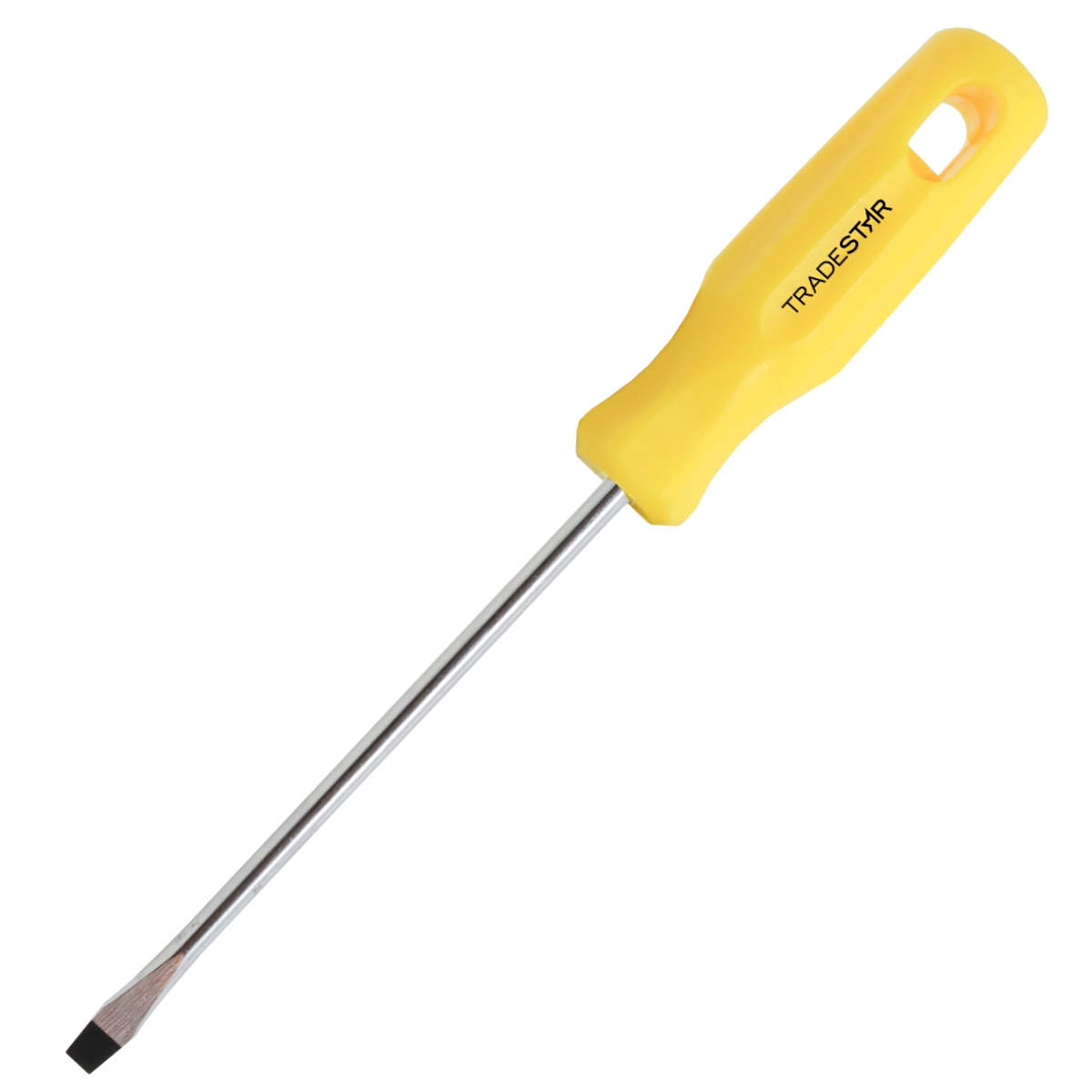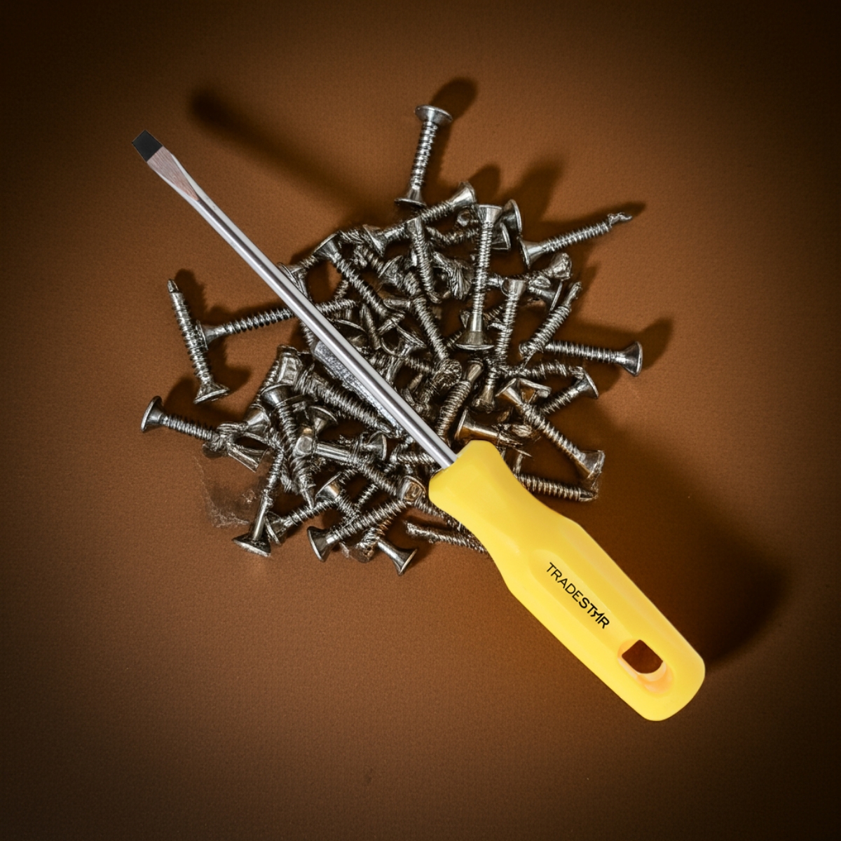 Chave de Fenda Tradestar 3/16 x 5'' Cromo VanádioA Chave de Fenda Tradestar 3/16 x 5'' Cromo Vanádio é um item indispensável para qualquer profissional da área de manutenção, montagem, instalação ou para uso doméstico. Fabricada com aço Cromo Vanádio (Cr-V), material conhecido pela sua elevada resistência mecânica e durabilidade, essa ferramenta oferece desempenho confiável mesmo em trabalhos de uso intenso.Seu design equilibrado permite excelente controle, garantindo precisão no encaixe da ponta e reduzindo o risco de desgaste prematuro dos parafusos ou da própria ferramenta.O cabo anatômico proporciona conforto e firmeza na pegada, reduzindo a fadiga durante longos períodos de uso. Fabricado com material resistente, ele também oferece boa aderência, evitando escorregões e aumentando a segurança durante o trabalho. Essa característica é especialmente útil em ambientes de manutenção industrial, oficinas mecânicas, marcenarias ou instalações elétricas e hidráulicas.A haste em aço Cromo Vanádio é tratada termicamente, resultando em maior resistência à torção e melhor vida útil da ferramenta. Além disso, o acabamento polido e protegido contra oxidação ajuda a manter a qualidade da chave por mais tempo, mesmo em ambientes úmidos ou expostos a variações de temperatura.Compacta e leve, a Chave de Fenda Tradestar 3/16 x 5'' é extremamente versátil. Pode ser utilizada em reparos domésticos, montagem de móveis, manutenção automotiva, ajustes de equipamentos e em diversas outras situações. Sua construção robusta e acabamento de qualidade fazem dela uma ferramenta confiável tanto para profissionais quanto para usuários que buscam soluções eficientes para o dia a dia.Especificações- Tipo: Chave de fenda reta- Tamanho: 3/16 x 5''- Material da haste: Aço Cromo Vanádio (Cr-V)- Cabo: Anatômico com aderência reforçada- Indicação de uso: Aperto e desaperto de parafusos com fenda retaItens inclusos- 01 Chave de Fenda Tradestar 3/16 x 5'' Cromo VanádioGarantia- 03 meses com o Fabricante