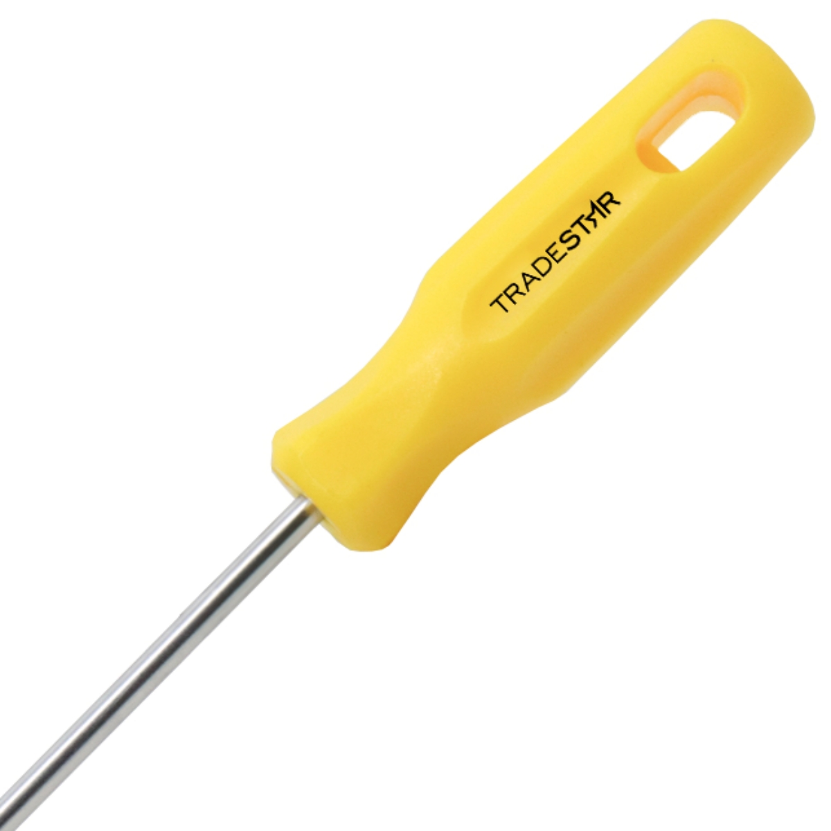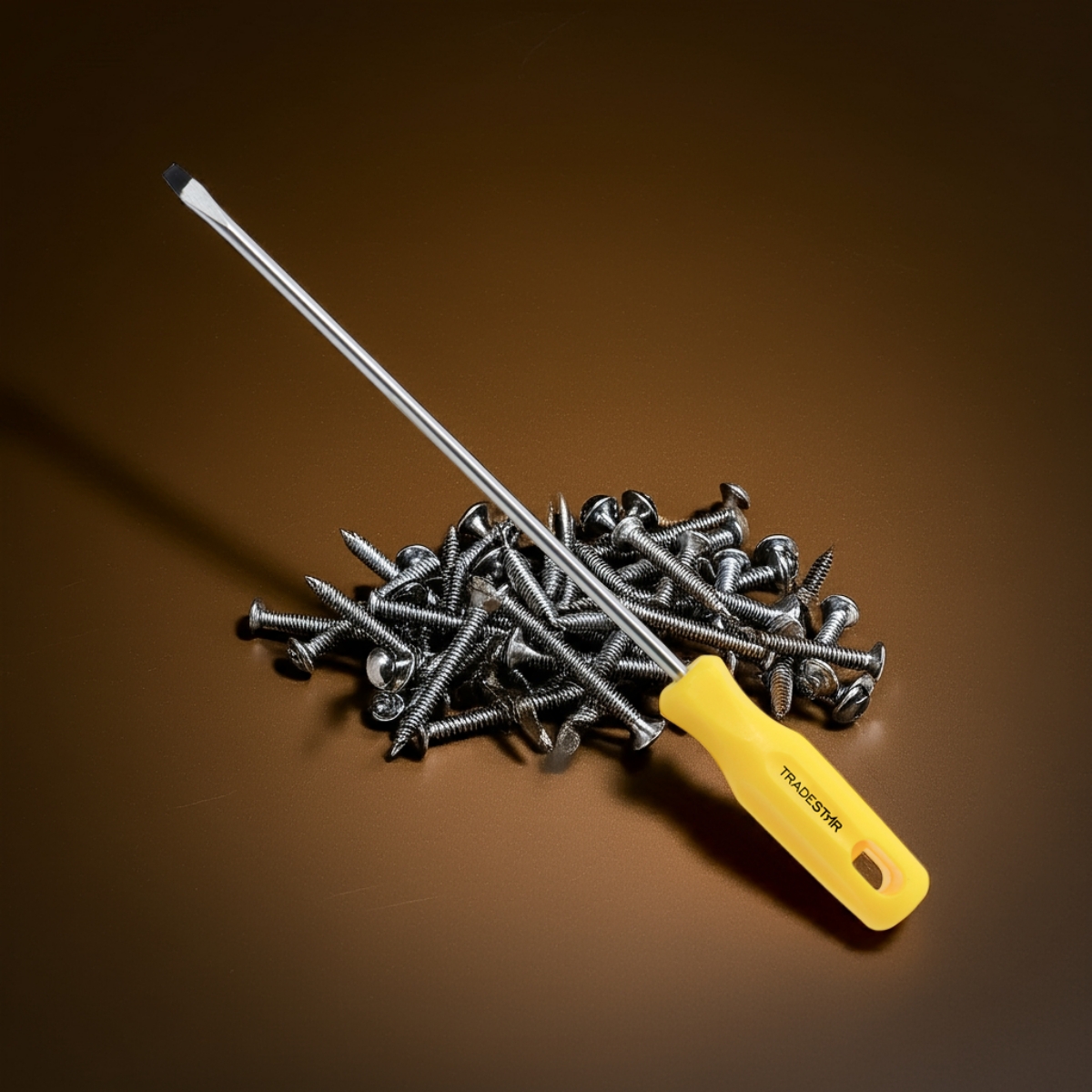 Chave de Fenda Tradestar 3/16 x 8'' Cromo VanádioA Chave de Fenda Tradestar 3/16 x 8'' Cromo Vanádio é um item indispensável para qualquer profissional da área de manutenção, montagem, instalação ou para uso doméstico. Fabricada com aço Cromo Vanádio (Cr-V), material conhecido pela sua elevada resistência mecânica e durabilidade, essa ferramenta oferece desempenho confiável mesmo em trabalhos de uso intenso.Seu design equilibrado permite excelente controle, garantindo precisão no encaixe da ponta e reduzindo o risco de desgaste prematuro dos parafusos ou da própria ferramenta.O cabo anatômico proporciona conforto e firmeza na pegada, reduzindo a fadiga durante longos períodos de uso. Fabricado com material resistente, ele também oferece boa aderência, evitando escorregões e aumentando a segurança durante o trabalho. Essa característica é especialmente útil em ambientes de manutenção industrial, oficinas mecânicas, marcenarias ou instalações elétricas e hidráulicas.A haste em aço Cromo Vanádio é tratada termicamente, resultando em maior resistência à torção e melhor vida útil da ferramenta. Além disso, o acabamento polido e protegido contra oxidação ajuda a manter a qualidade da chave por mais tempo, mesmo em ambientes úmidos ou expostos a variações de temperatura.Compacta e leve, a Chave de Fenda Tradestar 3/16 x 8'' é extremamente versátil. Pode ser utilizada em reparos domésticos, montagem de móveis, manutenção automotiva, ajustes de equipamentos e em diversas outras situações. Sua construção robusta e acabamento de qualidade fazem dela uma ferramenta confiável tanto para profissionais quanto para usuários que buscam soluções eficientes para o dia a dia.Especificações- Tipo: Chave de fenda reta- Tamanho: 3/16 x 8''- Material da haste: Aço Cromo Vanádio (Cr-V)- Cabo: Anatômico com aderência reforçada- Indicação de uso: Aperto e desaperto de parafusos com fenda retaItens inclusos- 01 Chave de Fenda Tradestar 3/16 x 8'' Cromo VanádioGarantia- 03 meses com o Fabricante