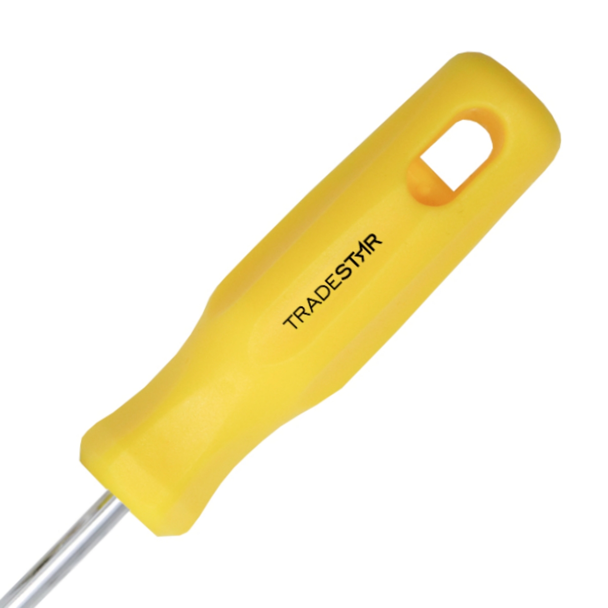 Chave Phillips Tradestar 1/4 x 5" CR-VA Chave Phillips Tradestar 1/4 x 5" Cromo Vanádio (Cr-V) foi desenvolvida para oferecer desempenho, durabilidade e segurança em tarefas que exigem alcance estendido e torque adequado. Sua ponta no padrão Phillips é ideal para parafusos com encaixe em cruz, garantindo firmeza e minimizando o risco de espanar a cabeça do parafuso, mesmo em aplicações que demandam mais força.Fabricada em aço Cromo Vanádio, reconhecido por sua resistência mecânica superior e durabilidade, a ferramenta suporta esforços repetitivos e é menos propensa a deformações, garantindo vida útil prolongada. O tratamento térmico na haste proporciona ainda mais robustez, resistindo à torção e mantendo a precisão da ponta por muito mais tempo.O cabo anatômico foi projetado para oferecer conforto e firmeza na pegada, mesmo durante trabalhos prolongados. Com superfície que auxilia na aderência, evita deslizamentos e proporciona maior segurança, especialmente em ambientes onde o operador esteja com as mãos suadas ou utilizando luvas.Versátil e eficiente, a Chave Phillips Tradestar 1/4 x 5" é indicada tanto para uso profissional quanto doméstico. Ela se destaca na montagem de móveis, manutenção de eletrodomésticos, reparos automotivos, ajustes em máquinas e equipamentos, além de trabalhos na construção civil e elétrica.Especificações- Tipo: Chave Phillips (ponta cruz)- Dimensões: 1/4 x 5"- Material da haste: Aço Cromo Vanádio (Cr-V)- Tratamento: Térmico para maior resistência- Cabo: Anatômico com aderência reforçada- Indicação de uso: Aperto e desaperto de parafusos PhillipsItens Inclusos- 01 Chave Phillips Tradestar 1/4 x 5" Cromo VanádioGarantia- 03 meses com o Fabricante