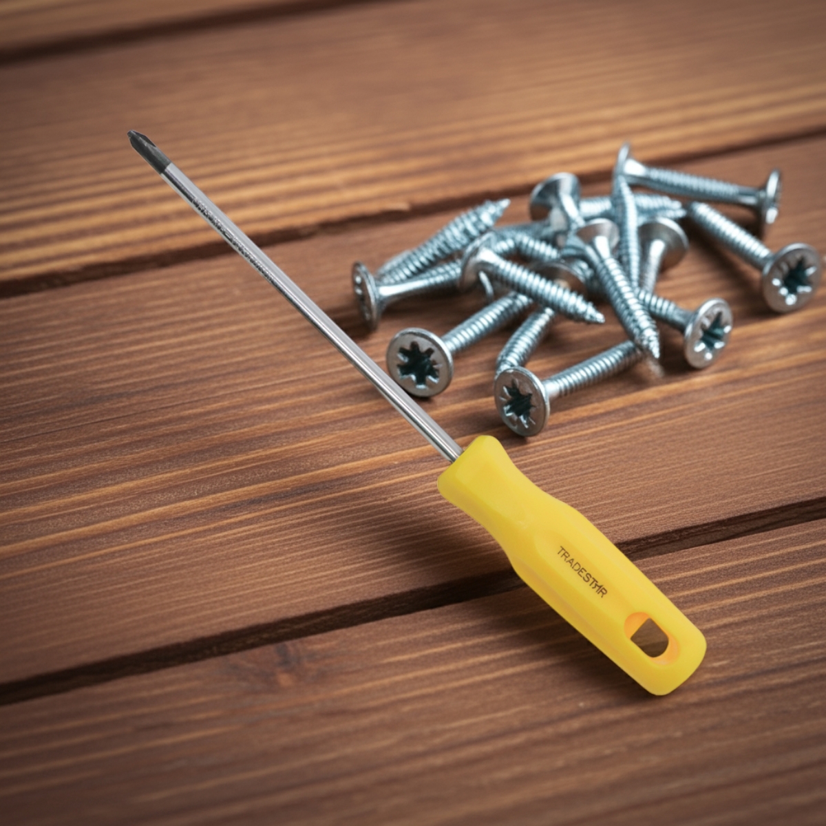 Chave Phillips Tradestar 1/4 x 6" CR-VA Chave Phillips Tradestar 1/4 x 6" Cromo Vanádio (Cr-V) foi desenvolvida para oferecer desempenho, durabilidade e segurança em tarefas que exigem alcance estendido e torque adequado. Sua ponta no padrão Phillips é ideal para parafusos com encaixe em cruz, garantindo firmeza e minimizando o risco de espanar a cabeça do parafuso, mesmo em aplicações que demandam mais força.Fabricada em aço Cromo Vanádio, reconhecido por sua resistência mecânica superior e durabilidade, a ferramenta suporta esforços repetitivos e é menos propensa a deformações, garantindo vida útil prolongada. O tratamento térmico na haste proporciona ainda mais robustez, resistindo à torção e mantendo a precisão da ponta por muito mais tempo.O cabo anatômico foi projetado para oferecer conforto e firmeza na pegada, mesmo durante trabalhos prolongados. Com superfície que auxilia na aderência, evita deslizamentos e proporciona maior segurança, especialmente em ambientes onde o operador esteja com as mãos suadas ou utilizando luvas.Versátil e eficiente, a Chave Phillips Tradestar 1/4 x 6" é indicada tanto para uso profissional quanto doméstico. Ela se destaca na montagem de móveis, manutenção de eletrodomésticos, reparos automotivos, ajustes em máquinas e equipamentos, além de trabalhos na construção civil e elétrica.Especificações- Tipo: Chave Phillips (ponta cruz)- Dimensões: 1/4 x 6"- Material da haste: Aço Cromo Vanádio (Cr-V)- Tratamento: Térmico para maior resistência- Cabo: Anatômico com aderência reforçada- Indicação de uso: Aperto e desaperto de parafusos PhillipsItens Inclusos- 01 Chave Phillips Tradestar 1/4 x 6" Cromo VanádioGarantia- 03 meses com o Fabricante