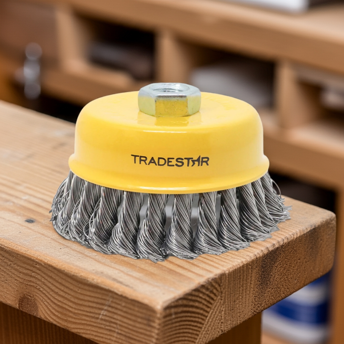 Escova Aço Carbono Tradestar Circular 4" Aço Torcido Rosca M14A Escova Copo Circular Tradestar 4" em Aço Torcido com Rosca M14 é a solução ideal para trabalhos de limpeza pesada, preparação e acabamento de superfícies metálicas. Fabricada em aço carbono de alta resistência, proporciona maior durabilidade e excelente desempenho em aplicações profissionais e industriais.Seu design em formato copo com cerdas torcidas garante maior poder de remoção, sendo indicada para eliminar ferrugem, tintas, resíduos de solda e incrustações em geral. Com encaixe padrão rosca M14, oferece instalação rápida e segura em esmerilhadeiras angulares.Com rotação máxima de 12.500 RPM, esta escova garante eficiência e rapidez nos trabalhos, mantendo a resistência mesmo sob condições de uso intenso.Especificações- Diâmetro: 4"- Encaixe: Rosca M14 (compatível com esmerilhadeiras angulares)- Material: Aço carbono torcido de alta resistência- Rotação máxima: 12.500 RPM- Indicação de uso: Remoção de ferrugem, tintas, resíduos de solda, oxidação e limpeza de peças metálicasItens inclusos- 1 Escova Copo 4" Aço Torcido Rosca M14Garantia- 04 meses com o Fabricante