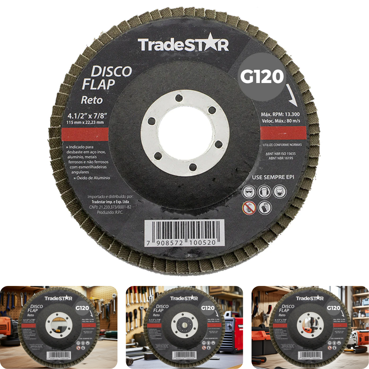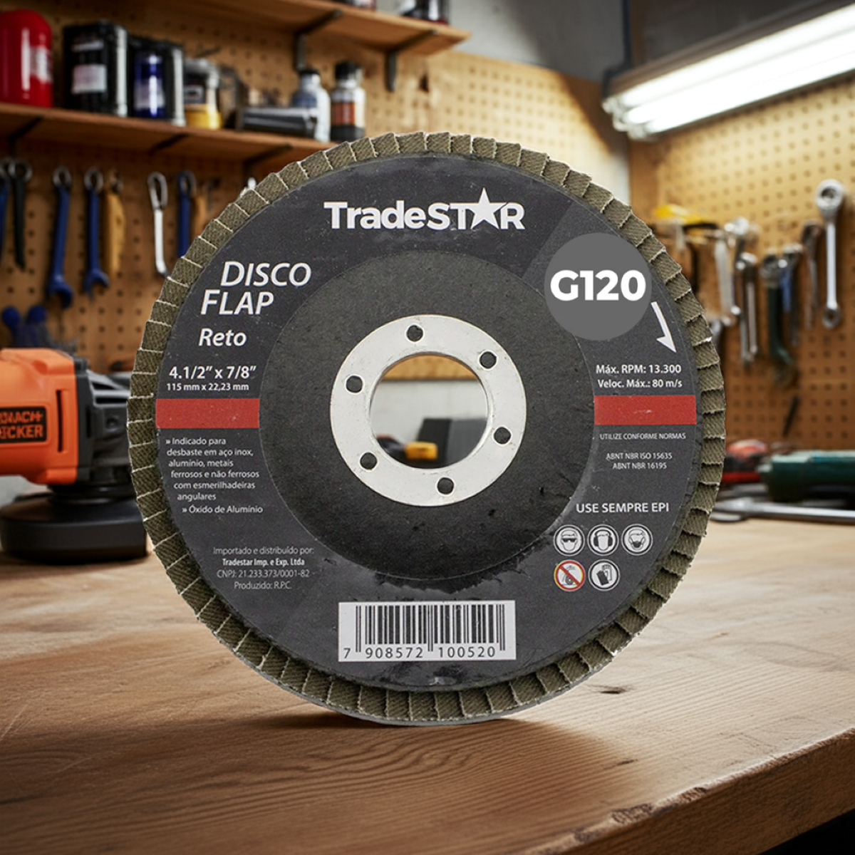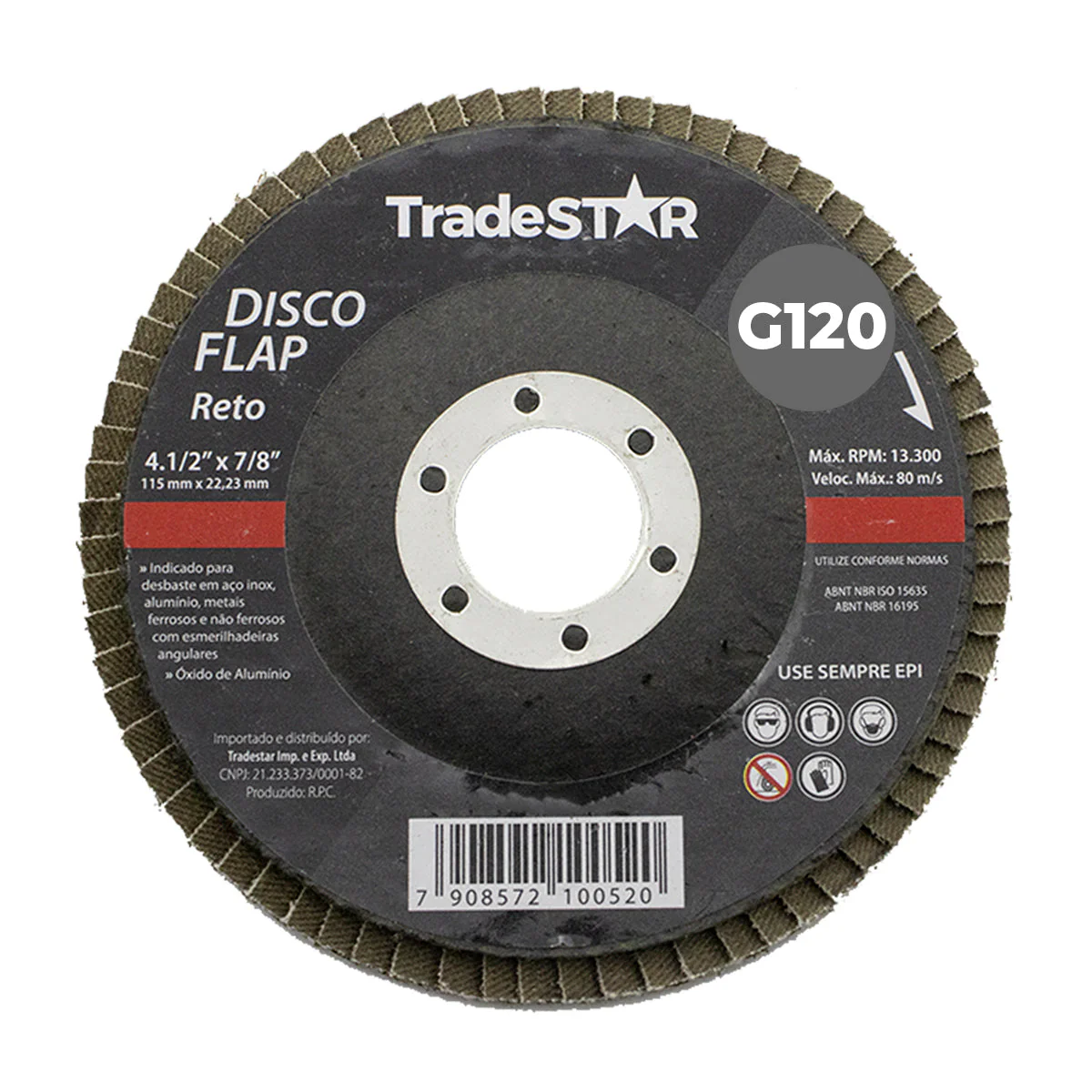 Disco Flap 115 mm G120 Fibra Reto Aço Tradestar