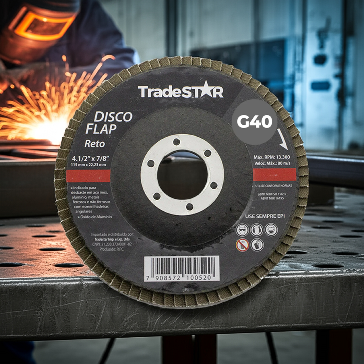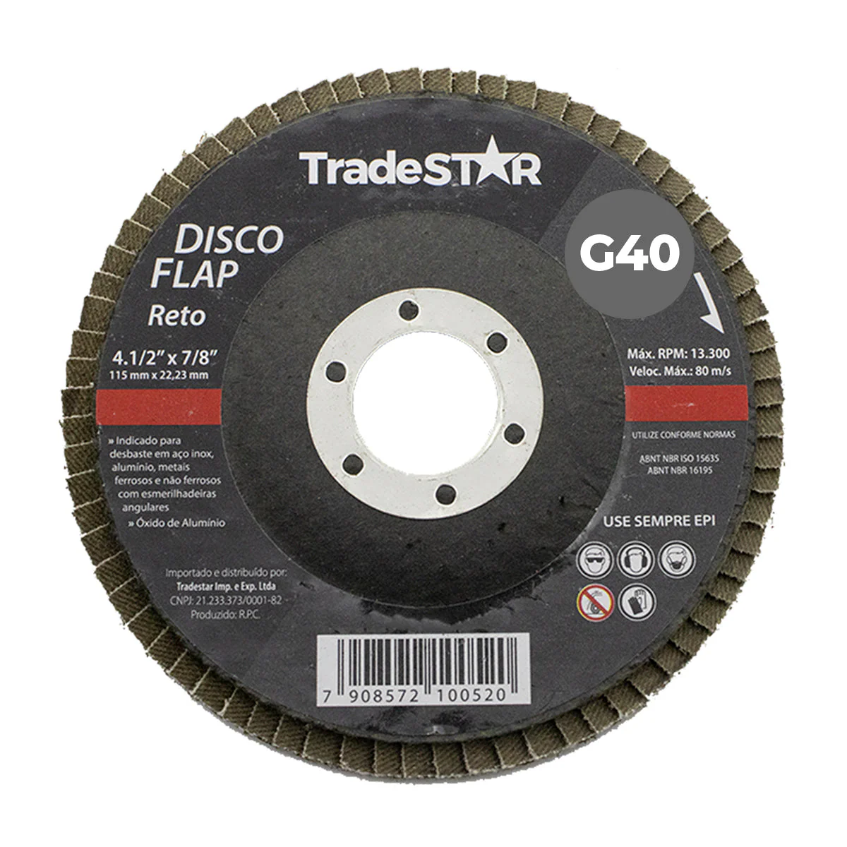 Disco Flap 115 mm G40 Fibra Reto Aço Tradestar