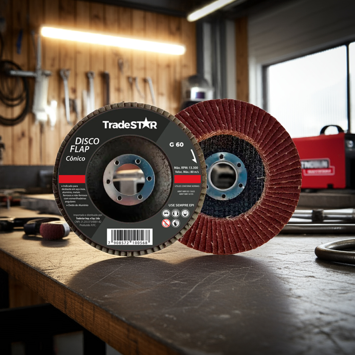 Disco de Desbaste Tradestar 115 mm G60 Fibra Cônico AçoO Disco de Desbaste Tradestar 115 mm G60 Fibra Cônico Aço é a ferramenta ideal para profissionais e hobbistas que buscam eficiência, resistência e precisão em trabalhos de desbaste e acabamento. Fabricado com materiais de alta qualidade, este disco flap garante excelente desempenho em diversas aplicações, proporcionando produtividade e um acabamento superior.Além da aplicação em metais, o Disco Tradestar G60 também pode ser utilizado em madeira, proporcionando versatilidade e tornando-se uma opção confiável tanto para oficinas quanto para trabalhos de manutenção, construção civil e serralheria. A base de fibra oferece resistência e durabilidade, garantindo que o disco suporte longos períodos de uso sem comprometer sua eficiência.Outro ponto de destaque é sua compatibilidade com esmerilhadeiras angulares, uma das ferramentas mais utilizadas em processos de corte e desbaste. O encaixe padrão facilita a instalação e troca do disco, otimizando o fluxo de trabalho e proporcionando praticidade ao usuário. Para alcançar os melhores resultados, recomenda-se manter a esmerilhadeira em um ângulo adequado e realizar movimentos firmes e controlados, garantindo precisão e uniformidade no acabamento.Esse disco flap é amplamente utilizado em ambientes industriais e profissionais, mas também atende com eficiência quem busca resultados de qualidade em pequenos projetos pessoais. Seja para desbastar peças metálicas, preparar superfícies antes da pintura ou realizar acabamentos em soldas, ele entrega desempenho superior e longa vida útil.Especificações- Dimensões: 115 mm - Grão: G60- Tipo: Flap Cônico- Material: Fibra com abrasivo de alta performance- Indicação de uso: Desbaste e acabamento em metais, madeiras e superfícies diversas- Compatibilidade: Esmerilhadeiras angulares com encaixe padrão 7/8"Itens inclusos- 01 Disco Acabamento Tradestar 115 mm G60 Fibra Cônico AçoGarantia- 03 meses com o Fabricante