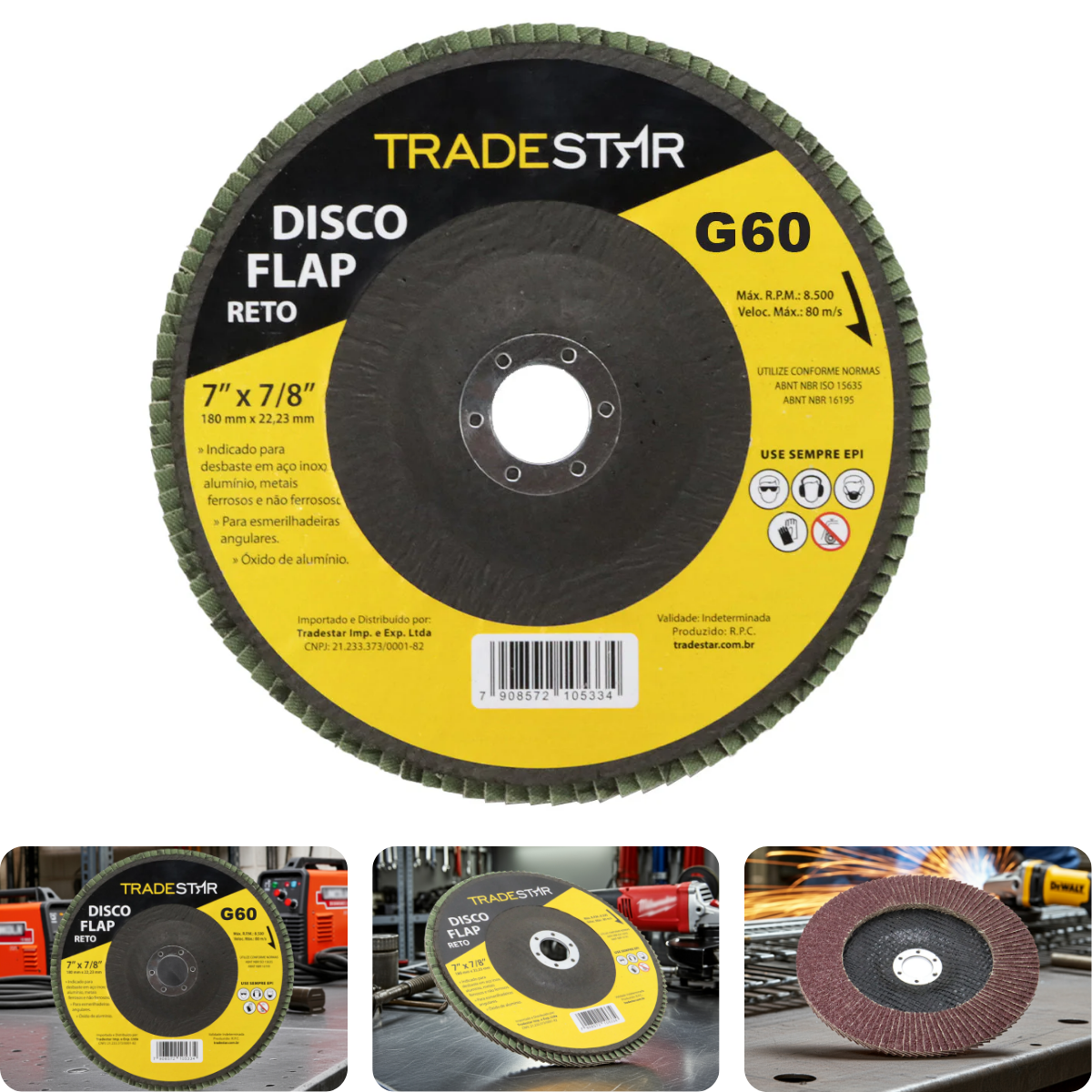 Disco Flap 180 mm G60 Fibra Reto Aço Tradestar