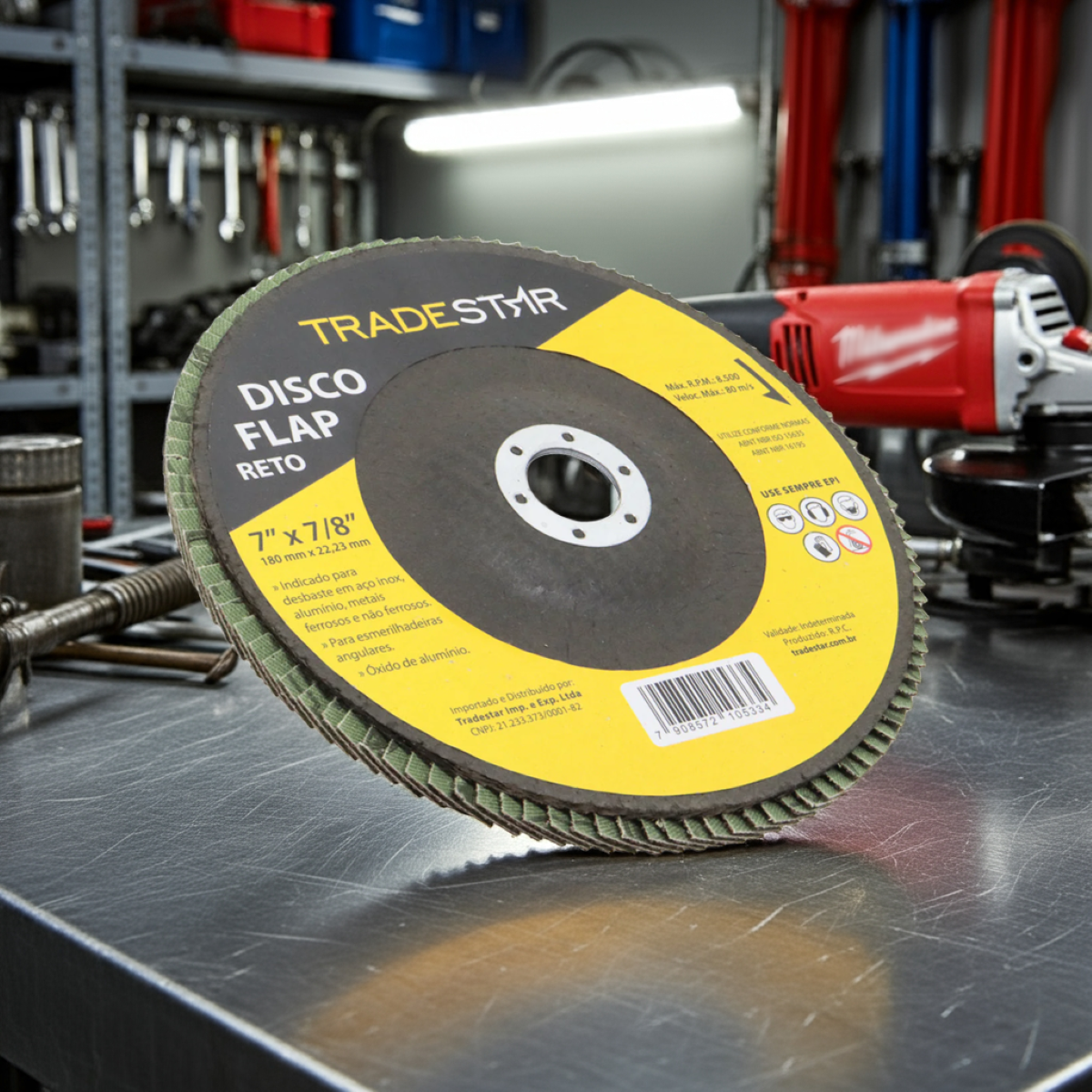 Disco de Desbaste Tradestar 180 mm G60 Fibra Reto AçoO Disco de Desbaste Reto Tradestar 180 mm G60 é uma ferramenta indispensável para quem busca qualidade, resistência e acabamento superior em trabalhos com metais. Desenvolvido com abrasivo de óxido de alumínio, esse disco flap reto combina desempenho consistente com alta durabilidade, sendo ideal tanto para profissionais da indústria quanto para usuários que realizam projetos de manutenção e reparo em oficinas ou em casa. Seu formato reto é especialmente projetado para oferecer maior estabilidade durante o uso, tornando-o perfeito para acabamentos em superfícies planas. Enquanto os discos cônicos são mais indicados para remoção rápida de material, o modelo reto garante precisão, uniformidade e acabamento refinado, atendendo às exigências de quem busca resultados de qualidade em trabalhos de desbaste e acabamento. É indicado para aplicações em aço carbono, inox, alumínio, metais ferrosos e não ferrosos, tornando-se uma solução versátil para diversos setores, como indústria naval, fundições, serralherias, construção civil e indústria automobilística. Projetado para atingir até 8.500 RPM e suportar velocidades de até 80 m/s, o Disco de Desbaste Tradestar garante eficiência mesmo em condições exigentes, sem comprometer a segurança do operador.O diâmetro de 180 mm (7”) e o furo central de 22,23 mm são aceitos na maioria das lixadeiras angulares elétricas ou pneumáticas, garantindo fácil instalação e segurança no manuseio. Além disso, o suporte em fibra de vidro de alta resistência assegura maior robustez e estabilidade durante a operação, aumentando a vida útil do disco e proporcionando um trabalho contínuo com menos desgaste.Especificações- Abrasivo: Óxido de alumínio- Grão: G60- Dimensões: 180 mm- Diâmetro do furo: 22,23 mm- Rotação máxima: 8.500 RPM- Velocidade máxima: 80 m/s- Suporte: Fibra de vidro de alta resistência- Indicação de uso: Desbaste e acabamento de aço carbono, aço inox, alumínio, metais ferrosos e não ferrososItens inclusos- 1 Flap Disc 180 mm G120 Fibra Fibra Reto AçoGarantia- 03 meses com o Fabricante