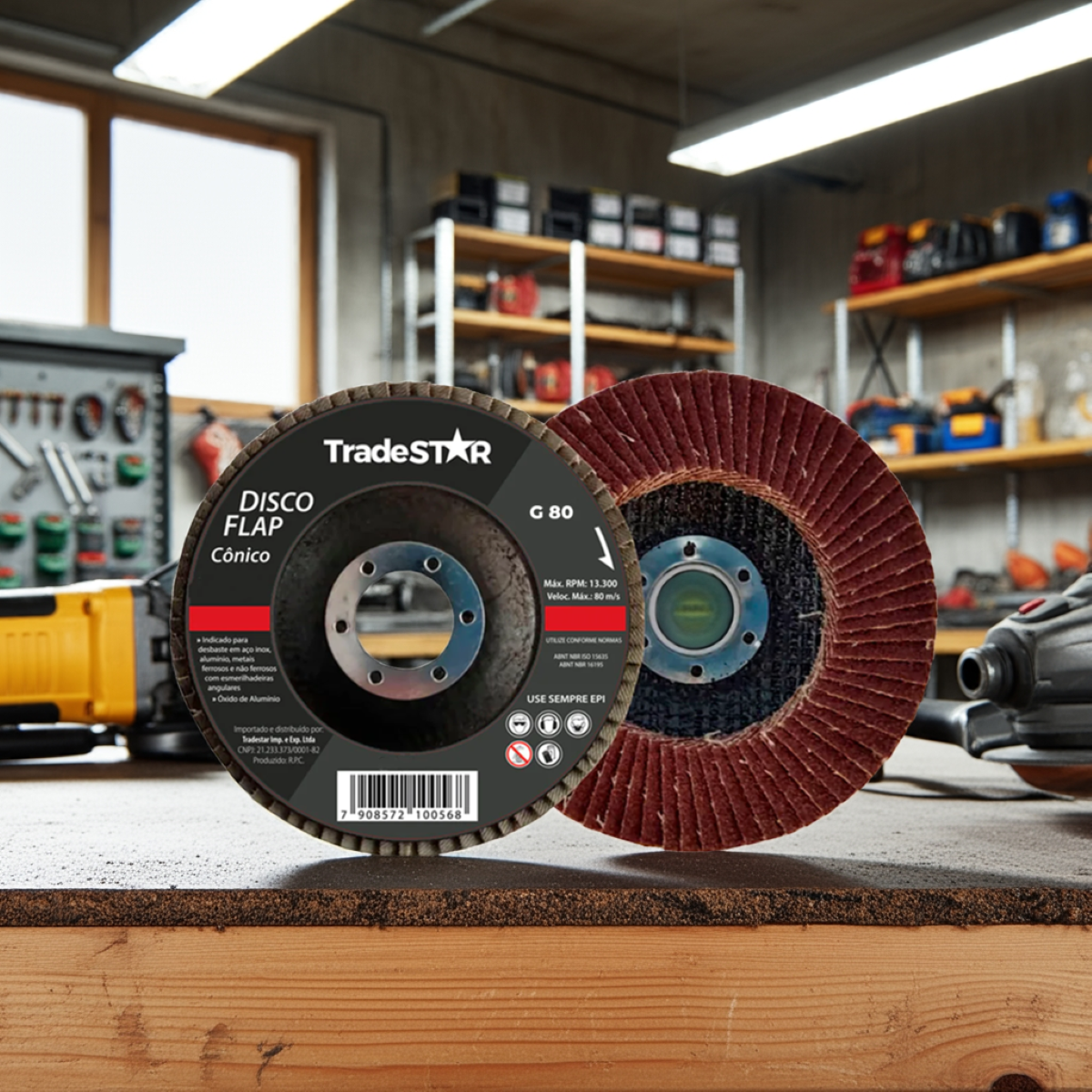 Disco de Desbaste Tradestar 115 mm G80 Fibra Cônico AçoO Disco de Desbaste Tradestar 115 mm G80 Fibra Cônico Aço é a ferramenta ideal para profissionais e hobbistas que buscam eficiência, resistência e precisão em trabalhos de desbaste e acabamento. Fabricado com materiais de alta qualidade, este disco flap garante excelente desempenho em diversas aplicações, proporcionando produtividade e um acabamento superior.Além da aplicação em metais, o Disco Tradestar G80 também pode ser utilizado em madeira, proporcionando versatilidade e tornando-se uma opção confiável tanto para oficinas quanto para trabalhos de manutenção, construção civil e serralheria. A base de fibra oferece resistência e durabilidade, garantindo que o disco suporte longos períodos de uso sem comprometer sua eficiência.Outro ponto de destaque é sua compatibilidade com esmerilhadeiras angulares, uma das ferramentas mais utilizadas em processos de corte e desbaste. O encaixe padrão facilita a instalação e troca do disco, otimizando o fluxo de trabalho e proporcionando praticidade ao usuário. Para alcançar os melhores resultados, recomenda-se manter a esmerilhadeira em um ângulo adequado e realizar movimentos firmes e controlados, garantindo precisão e uniformidade no acabamento.Esse disco flap é amplamente utilizado em ambientes industriais e profissionais, mas também atende com eficiência quem busca resultados de qualidade em pequenos projetos pessoais. Seja para desbastar peças metálicas, preparar superfícies antes da pintura ou realizar acabamentos em soldas, ele entrega desempenho superior e longa vida útil.Especificações- Dimensões: 115 mm - Grão: G80- Tipo: Flap Cônico- Material: Fibra com abrasivo de alta performance- Indicação de uso: Desbaste e acabamento em metais, madeiras e superfícies diversas- Compatibilidade: Esmerilhadeiras angulares com encaixe padrão 7/8"Itens inclusos- 01 Disco Acabamento Tradestar 115 mm G80 Fibra Cônico AçoGarantia- 03 meses com o Fabricante