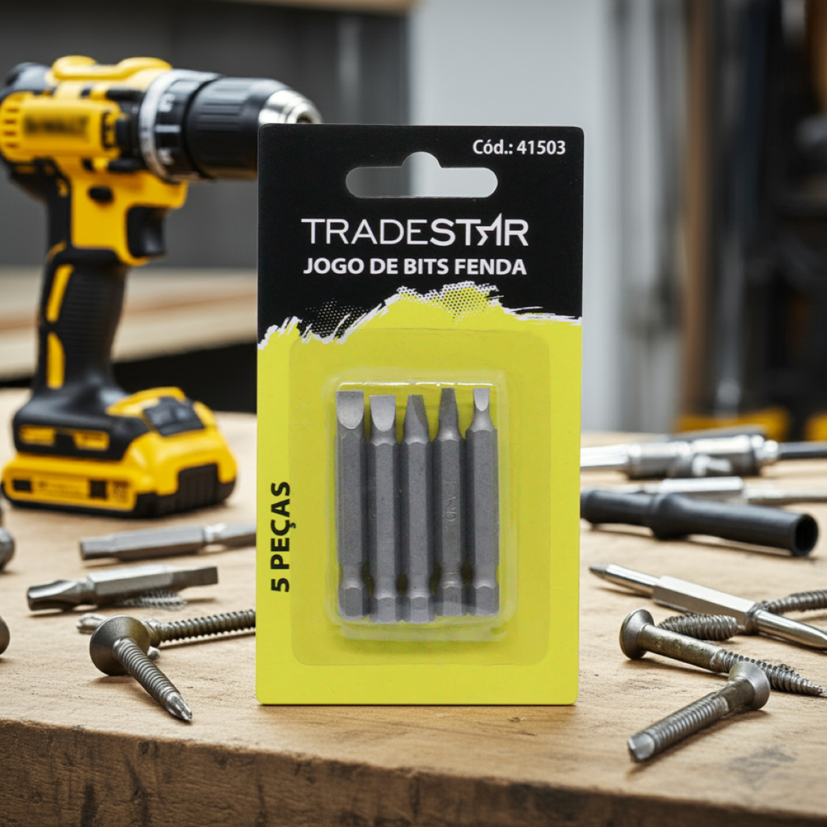 Jogo Bits Fenda Tradestar 1/4" 50 mm 5 PeçasO Jogo de Bits Fenda Tradestar 1/4" 50 mm – 5 Peças é ideal para profissionais e entusiastas que precisam de precisão, durabilidade e praticidade em trabalhos de montagem, manutenção e reparos. Fabricados em aço carbono de alta qualidade, esses bits garantem resistência ao desgaste e desempenho confiável em uso contínuo, seja em parafusadeiras elétricas ou chaves de fenda manuais.Com 5 pontas de diferentes tamanhos (3mm, 4mm, 5,5mm e 6mm), o conjunto permite realizar uma ampla variedade de serviços, desde trabalhos domésticos e DIY até aplicações profissionais em mecânica, marcenaria e eletrônica. A compatibilidade com diferentes ferramentas proporciona maior eficiência e segurança, evitando escorregamentos e facilitando o aperto ou a soltura de parafusos com fenda reta.Indicado para mecânicos, montadores de móveis, serralheiros, técnicos de informática, este jogo oferece versatilidade e confiabilidade, tornando-se essencial para qualquer caixa de ferramentas.Especificações- Material: Aço carbono de alta resistência- Encaixe: 1/4"- Comprimento: 50 mm- Quantidade: 5 peças- Tamanhos incluídos: 1 peça de 3 mm, 1 peça de 4 mm, 2 peças de 5,5 mm, 1 peça de 6 mm- Aplicações: Compatível com parafusadeiras elétricas e manuaisItens inclusos- 1 Jogo Bits Fenda 1/4" 50 mm 5 PeçasGarantia- 03 meses com o Fabricante