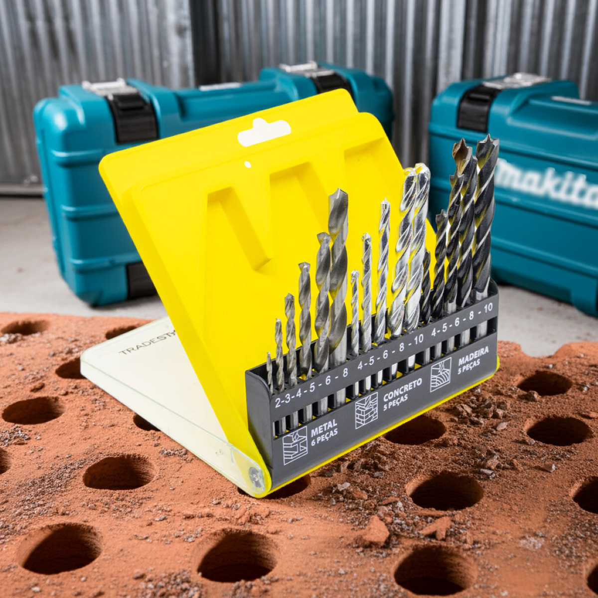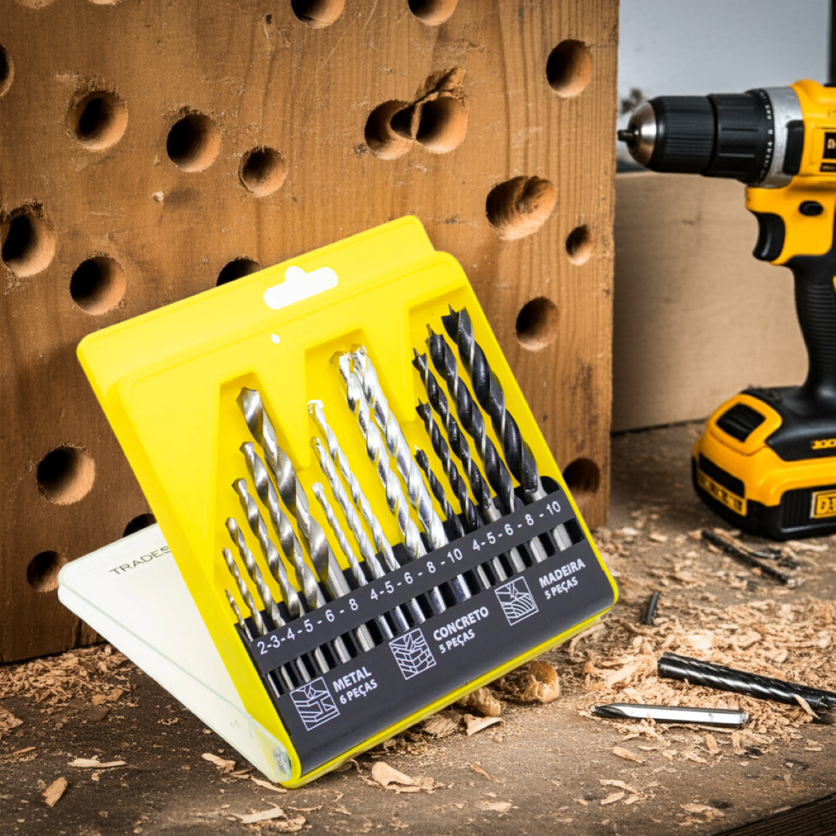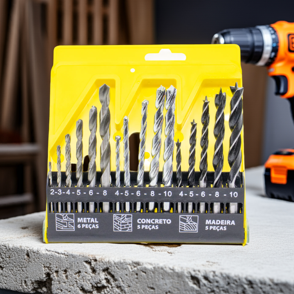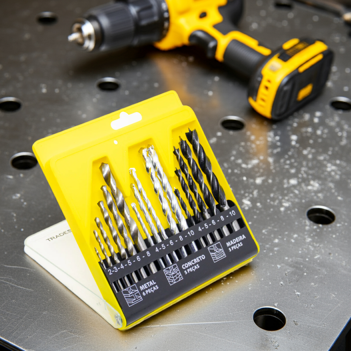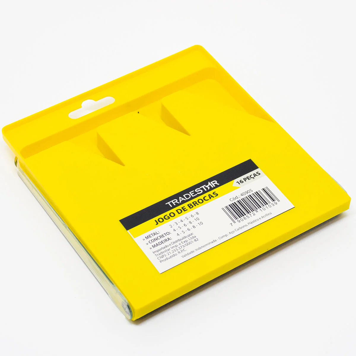 Jogo de Brocass Tradestar Concreto Madeira Metal 16 PeçasO Jogo de Brocas Tradestar 16 Peças foi desenvolvido para oferecer praticidade e versatilidade em um único kit. Composto por brocas específicas para metal, concreto e madeira, ele é ideal para quem busca uma solução completa para trabalhos de perfuração em diferentes materiais.As brocas para metal são fabricadas em aço de alta resistência, garantindo cortes precisos em metais ferrosos e não ferrosos. Já as brocas para concreto possuem ponta de vídea, proporcionando maior durabilidade e eficiência em alvenaria e superfícies rígidas. As brocas para madeira, por sua vez, possuem design que favorece a retirada de cavacos, assegurando perfurações limpas e rápidas.Todo o conjunto vem acondicionado em um estojo plástico resistente, que facilita o transporte, organização e armazenamento das peças. Assim, você terá sempre a ferramenta certa para cada tipo de aplicação, seja em obras, manutenções, montagens ou reparos domésticos.Especificações- Brocas para metal (aço): 2 mm, 3 mm, 4 mm, 5 mm, 6 mm e 8 mm- Brocas para concreto (ponta vídea): 4 mm, 5 mm, 6 mm, 8 mm e 10 mm- Brocas para madeira (helicoidais): 4 mm, 5 mm, 6 mm, 8 mm e 10 mm- Acondicionamento: Estojo plástico resistente- Indicação de uso: Perfurações em metal, concreto, alvenaria, madeira e derivadosItens inclusos- 1 Jogo Broca Mix Concreto/Madeira/Metal 16 PeçasGarantia- 03 meses com o Fabricante