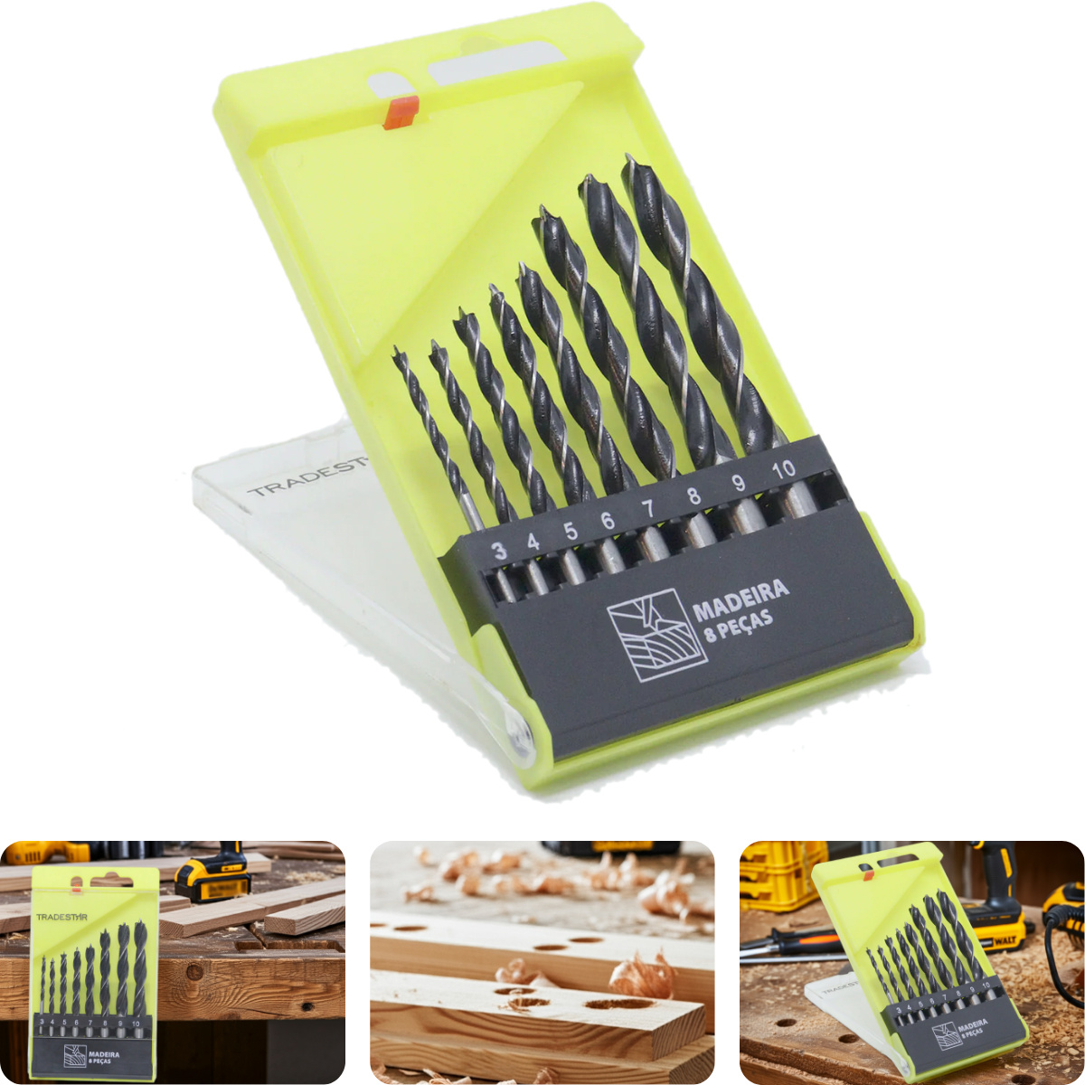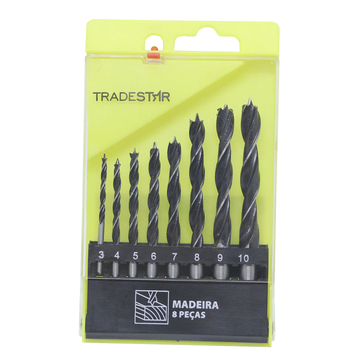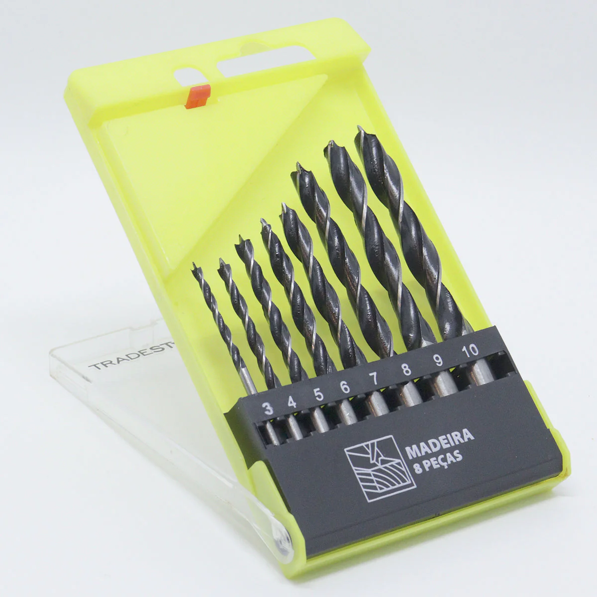 Jogo Broca Aço 3 Pontas Compensado Madeira 3 - 10 mm 8 Peças Tradestar