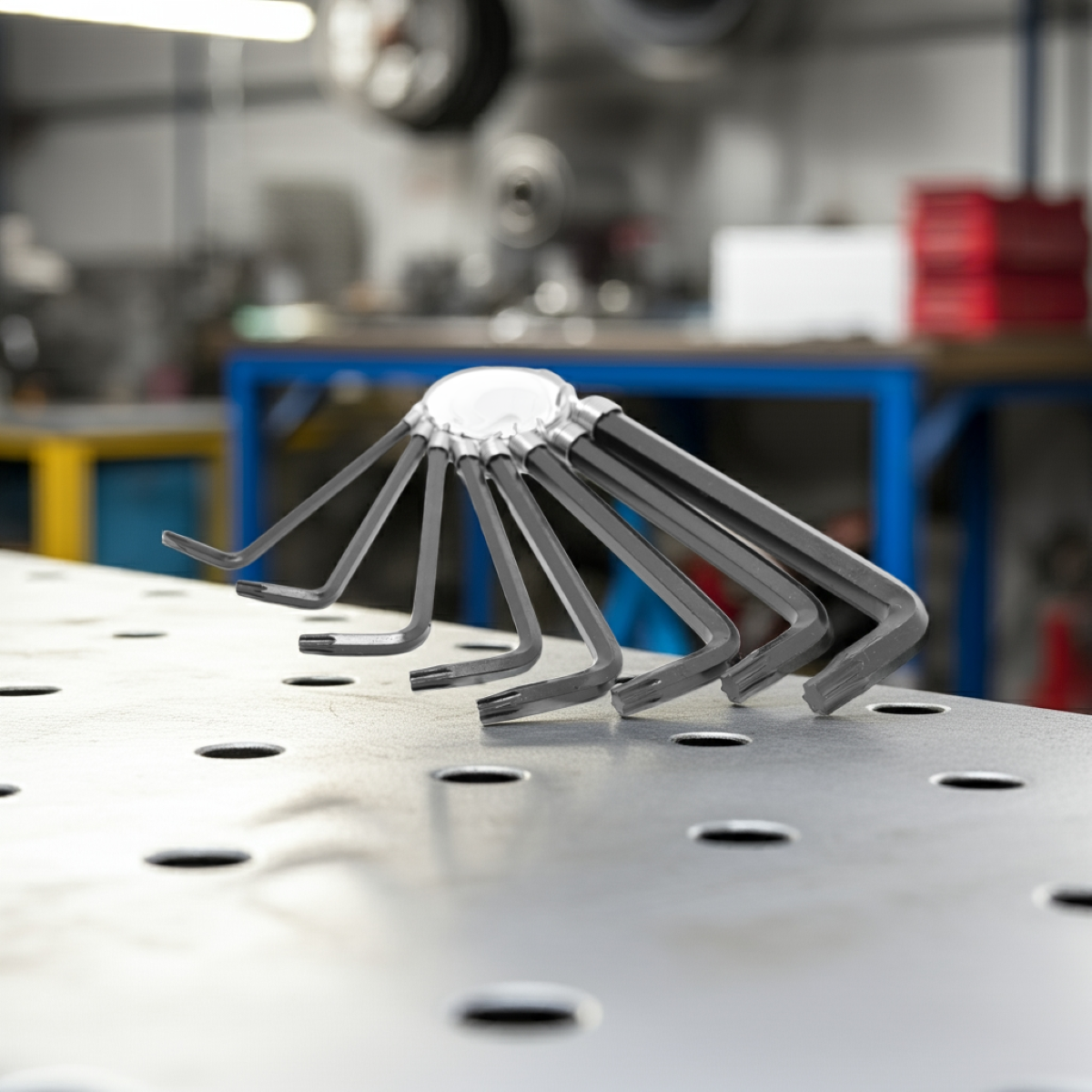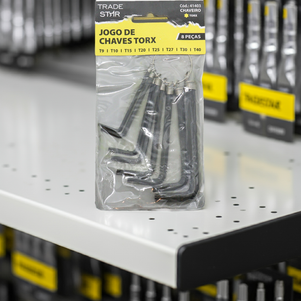 Kit Chave Torx T9 - T40 Chaveiro 8 Peças TradestarO Kit de Chaves Estrela Tradestar Tipo L T9 a T40 com 8 Peças é a escolha ideal para quem busca precisão, resistência e praticidade em tarefas de manutenção. Projetado especialmente para lidar com parafusos Torx – também conhecidos como hexalobulares – esse conjunto garante encaixe perfeito e maior distribuição da força, evitando o desgaste ou espanar da cabeça do parafuso.O kit acompanha 8 chaves nos tamanhos T9, T10, T15, T20, T25, T27, T30 e T40, cobrindo as principais medidas utilizadas em diferentes setores. Essa variedade de tamanhos torna o conjunto indispensável tanto para uso profissional quanto doméstico.Fabricadas em aço Cromo Vanádio de alta resistência, as chaves oferecem durabilidade excepcional, suportando uso frequente sem perder a eficiência. O acabamento reforçado também proporciona maior proteção contra corrosão e desgaste natural, garantindo ferramentas confiáveis por muito mais tempo.Graças ao formato tipo L, as chaves oferecem excelente alavancagem e permitem trabalhar em locais de difícil acesso, enquanto o chaveiro organizador incluso facilita o transporte e evita que as peças fiquem soltas, trazendo praticidade para quem precisa de mobilidade no dia a dia.Especificações- Tipo: Jogo de Chaves Torx Tipo L com chaveiro- Material: Aço Cromo Vanádio de alta resistência- Tamanhos inclusos: T9, T10, T15, T20, T25, T27, T30 e T40- Quantidade: 8 peças- Formato: Tipo L – maior torque e acesso em locais estreitos- Acessório: Chaveiro organizador prático- Uso: Aperto e desaperto de parafusos Torx (hexalobulares)Itens inclusos- 1 Jogo Chave Hexalobular Tradestar T9-T40 Chaveiro 8 PeçasGarantia- 03 meses com o Fabricante