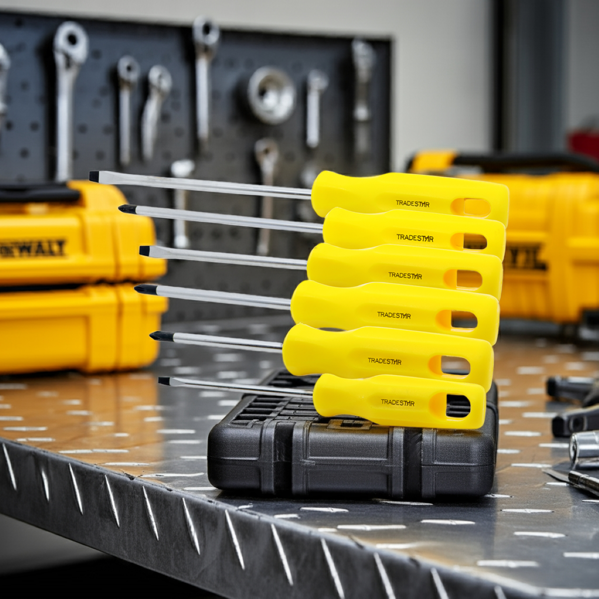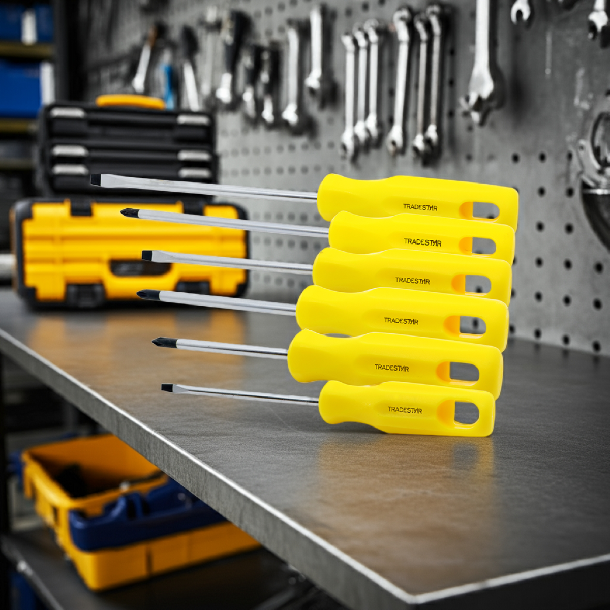 Kit Chaves Tradestar Fenda Phillips 6 Peças Cromo VanádioO Kit de Chaves Fenda e Phillips Tradestar 6 Peças é uma escolha inteligente para quem busca resistência, praticidade e versatilidade em suas ferramentas. Produzido em aço Cromo-Vanádio, este conjunto foi desenvolvido para suportar o uso frequente, garantindo maior durabilidade e desempenho superior em diferentes aplicações.Composto por chaves de fenda e Phillips nos tamanhos mais utilizados, o kit é ideal tanto para profissionais quanto para quem precisa de uma solução completa para reparos domésticos. Seja para montar móveis, realizar manutenções em eletrodomésticos, equipamentos eletrônicos ou mesmo em automóveis, este conjunto oferece a ferramenta certa para cada situação.As hastes fabricadas em aço Cromo-Vanádio asseguram maior resistência ao desgaste e deformações, tornando o kit confiável até em condições de uso mais exigentes. As pontas imantadas facilitam o manuseio dos parafusos, evitando que escorreguem durante o trabalho e proporcionando mais agilidade e precisão.Outro ponto forte é o design ergonômico dos cabos em polipropileno, que oferecem firmeza no manuseio e conforto durante o uso prolongado. Isso reduz a fadiga das mãos e permite aplicar maior torque com menos esforço, tornando as tarefas mais rápidas e eficientes.Graças à sua versatilidade, este kit é indispensável em caixas de ferramentas de profissionais de oficinas, marceneiros, eletricistas, técnicos de informática, além de ser perfeito para uso doméstico em reparos do dia a dia. Compacto e prático, ele garante que você sempre tenha à disposição as principais medidas de chaves fenda e Phillips para qualquer necessidade.Especificações- Tipo: Jogo de Chaves de Fenda e Phillips- Material da haste: Aço Cromo-Vanádio- Material do cabo: Polipropileno ergonômico- Pontas: Imantadas para fixação precisa dos parafusosItens inclusos- 1 Jogo Chaves Fenda Phillips Tradestar 6 Peças Cromo VanádioGarantia- 03 meses com o Fabricante