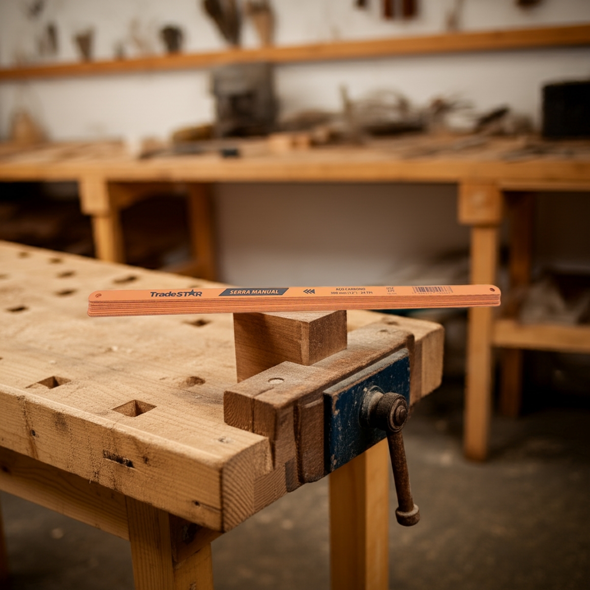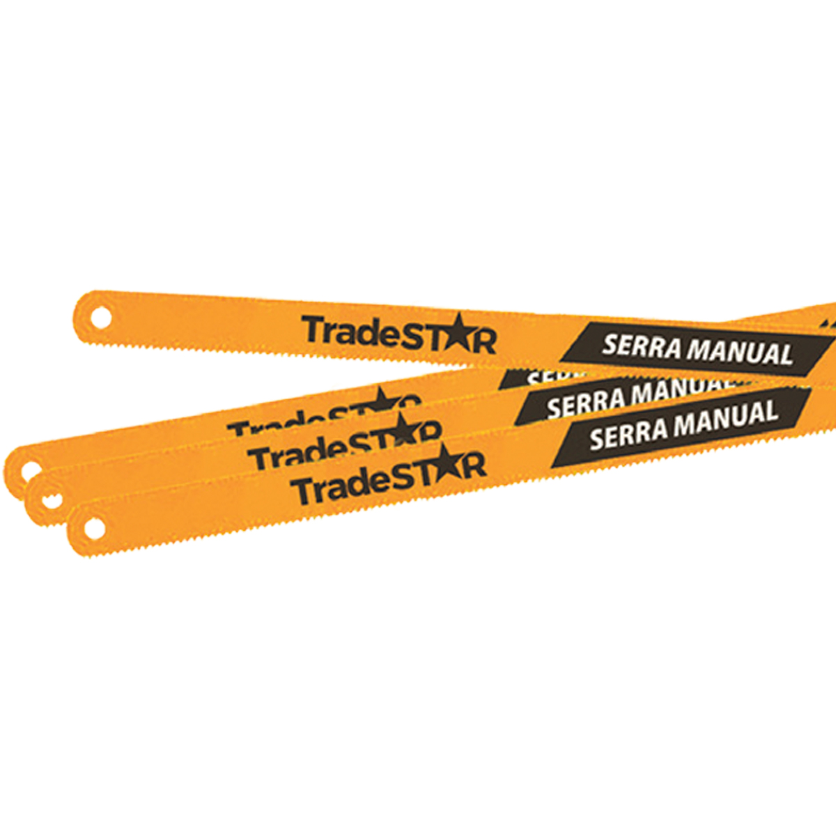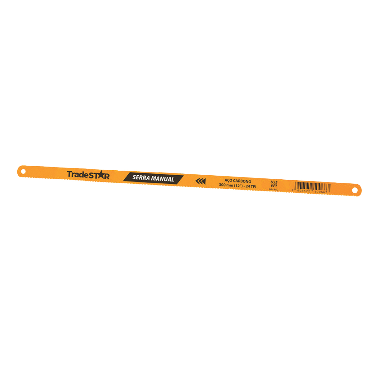 Serrinha Manual Tradestar Aço Carbono 24 Dentes por Polegada 300 mmA Serrinha Manual Tradestar 24 Dentes por Polegada (TPI) 300 mm é a ferramenta ideal para quem busca cortes precisos, limpos e consistentes em diferentes materiais. Fabricada em aço carbono de alta qualidade, oferece excelente durabilidade, resistência ao desgaste e desempenho superior em trabalhos contínuos.Com 24 dentes por polegada (24 TPI), proporciona cortes finos e detalhados, sendo indicada para aplicações que exigem maior precisão. Seu tamanho de 300 mm (12”) é o padrão para utilização em serras de arco, com encaixe universal que garante praticidade e compatibilidade. Versátil, pode ser utilizada em cortes de metais, PVC, plásticos e até em pequenos trabalhos de marcenaria.Especificações- Material: Aço carbono- Tamanho: 300 mm (12”) x 12 mm x 0,7 mm- Dentes: 24 TPI (dentes por polegada)- Compatibilidade: Encaixe universal para serras de arco- Indicação de uso: Cortes em metais, PVC, plásticos e madeira leveItens inclusos- 1 Lâmina Serra Manual 24 DPP 12" 300 mm Aço CarbonoGarantia- 03 meses com o Fabricante