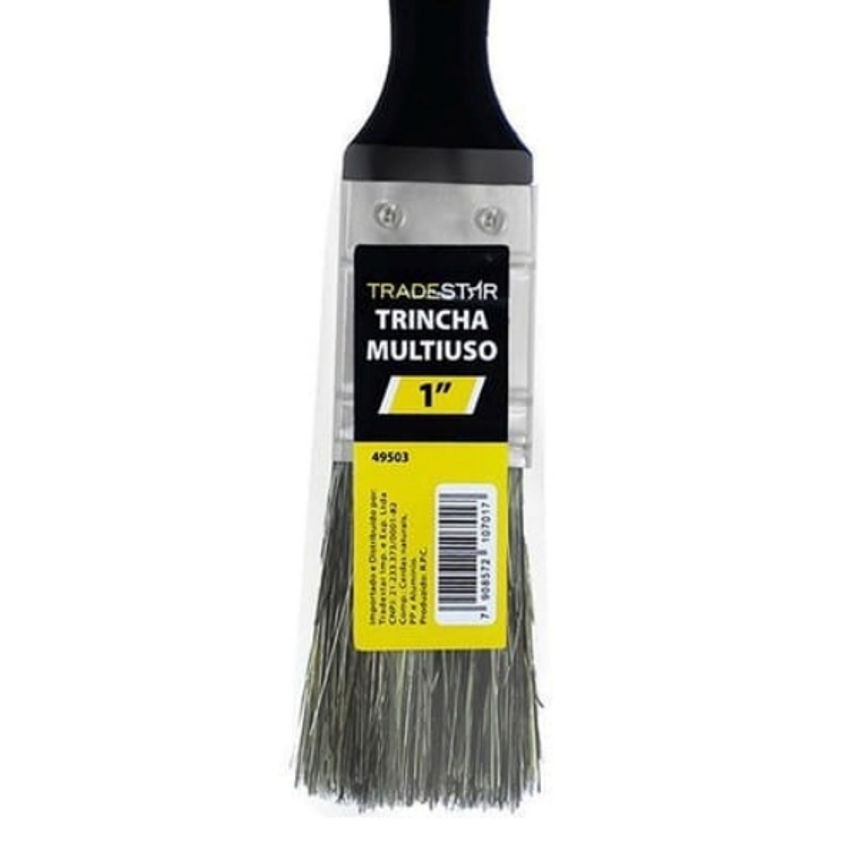 Pincel Trincha 1" Multiuso TradestarO Pincel Trincha 1" Multiuso Tradestar é a ferramenta ideal para profissionais e entusiastas que buscam acabamento preciso, qualidade e versatilidade em cada pincelada. Com cerdas resistentes e duráveis, proporciona controles precisos em detalhes, molduras e cantos, ao mesmo tempo que permite cobertura eficiente em superfícies maiores, adaptando-se a tintas à base de água ou óleo e vernizes.Perfeito para pintores profissionais, artistas, marceneiros e restauradores, este pincel garante resultados consistentes em projetos residenciais, comerciais e industriais, assim como em trabalhos artísticos e retoques finos em móveis ou estruturas de madeira. Seu design ergonômico facilita o manuseio, oferecendo conforto e precisão, reduzindo a fadiga mesmo em tarefas prolongadas.O Pincel Trincha Tradestar é sinônimo de qualidade e durabilidade, proporcionando acabamento uniforme, sem desperdício de tinta e com excelente aderência às superfícies. Ideal para quem busca acabamentos impecáveis, seja em renovação de móveis, pintura de paredes, estruturas de madeira ou projetos de artesanato.Especificações- Tipo: Pincel trincha multiuso- Tamanho: 1"- Cerdas: Sintéticas resistentes- Cor das cerdas: Preto- Uso indicado: Pintura residencial, comercial, artística e em madeira- Aplicações: Pintores, marceneiros, restauradores, artesãosItens inclusos- 1 Pincel Multiuso Gris 1" PretoGarantia- 03 meses com o Fabricante