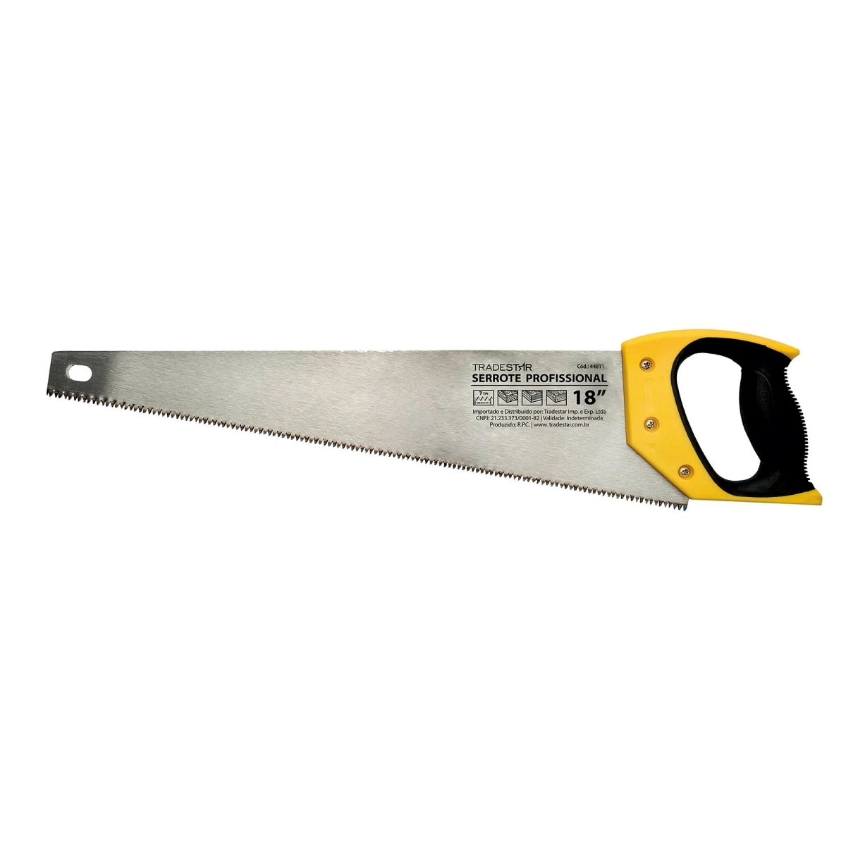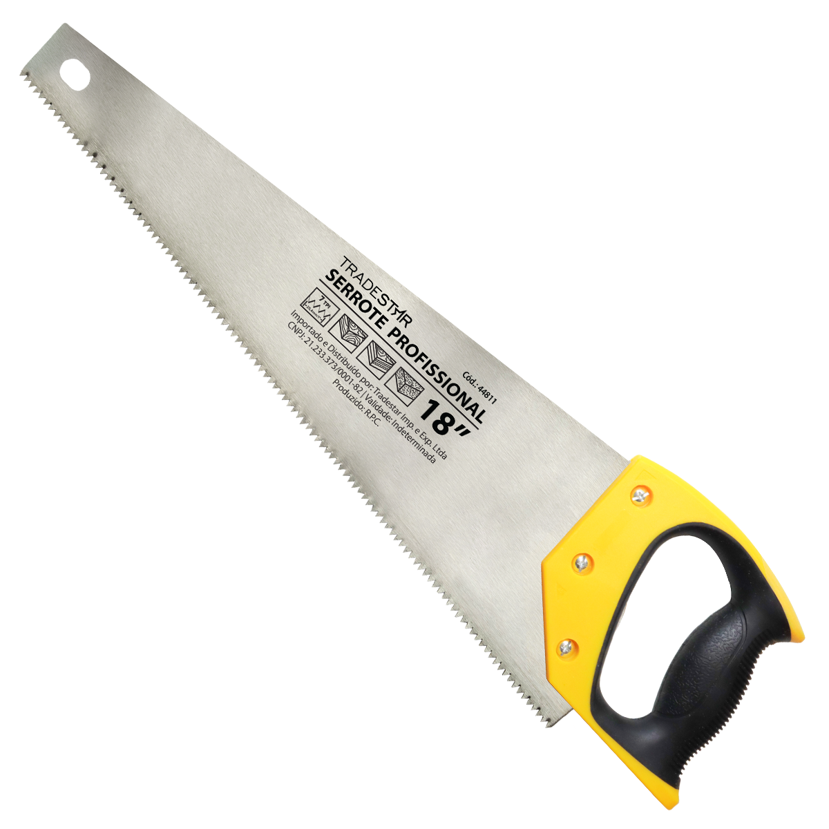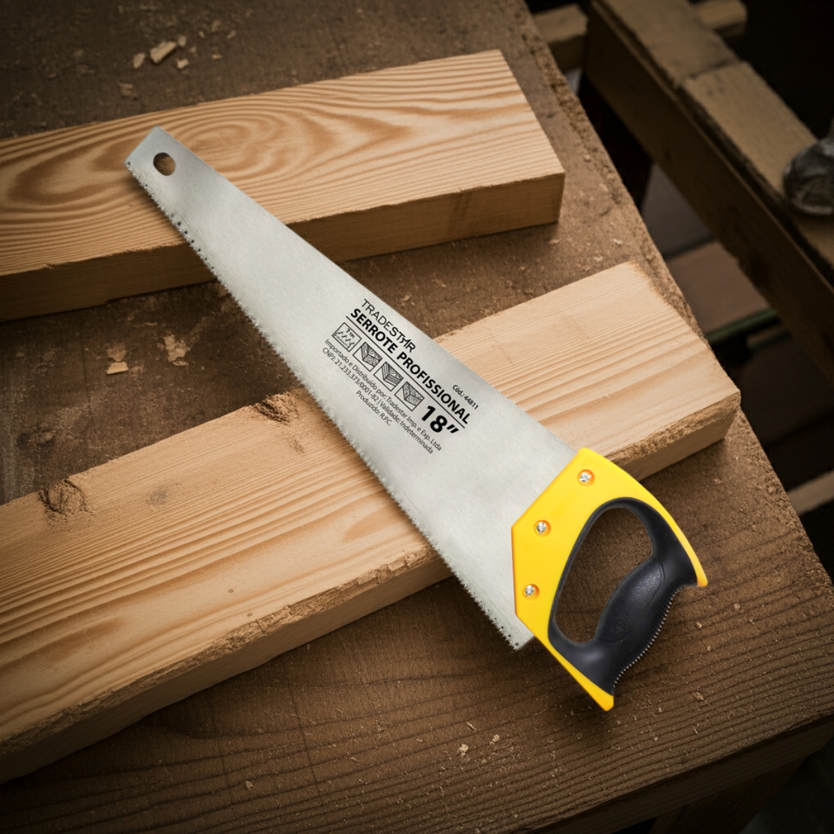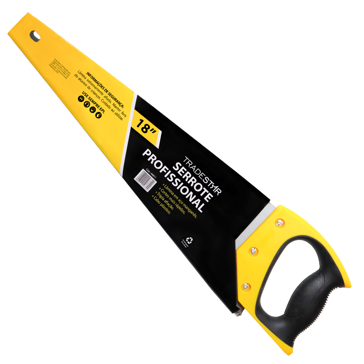 Serrote 18" Tradestar Cabo PlásticoO Serrote Tradestar 18" com Cabo Plástico é projetado para oferecer cortes rápidos, limpos e precisos em madeira seca, MDF e compensado. Sua lâmina em aço manganês de alta resistência, combinada com tripla afiação, proporciona excelente desempenho, reduzindo o esforço do operador e garantindo maior durabilidade mesmo em usos intensivos.O cabo em plástico ergonômico foi desenvolvido para oferecer firmeza, segurança e conforto durante o manuseio, possibilitando maior controle nos cortes. Essa combinação torna o serrote uma ferramenta indispensável para carpinteiros, marceneiros, montadores de móveis e entusiastas de bricolagem que buscam eficiência e precisão em seus projetos.Especificações- Tamanho da lâmina: 18"- Material da lâmina: Aço manganês temperado com tripla afiação- Cabo: Plástico ergonômico e resistente- Indicação de uso: Madeira seca, MDF e compensadoItens inclusos- 1 Serrote 18" Cabo PlásticoGarantia- 03 meses com o Fabricante
