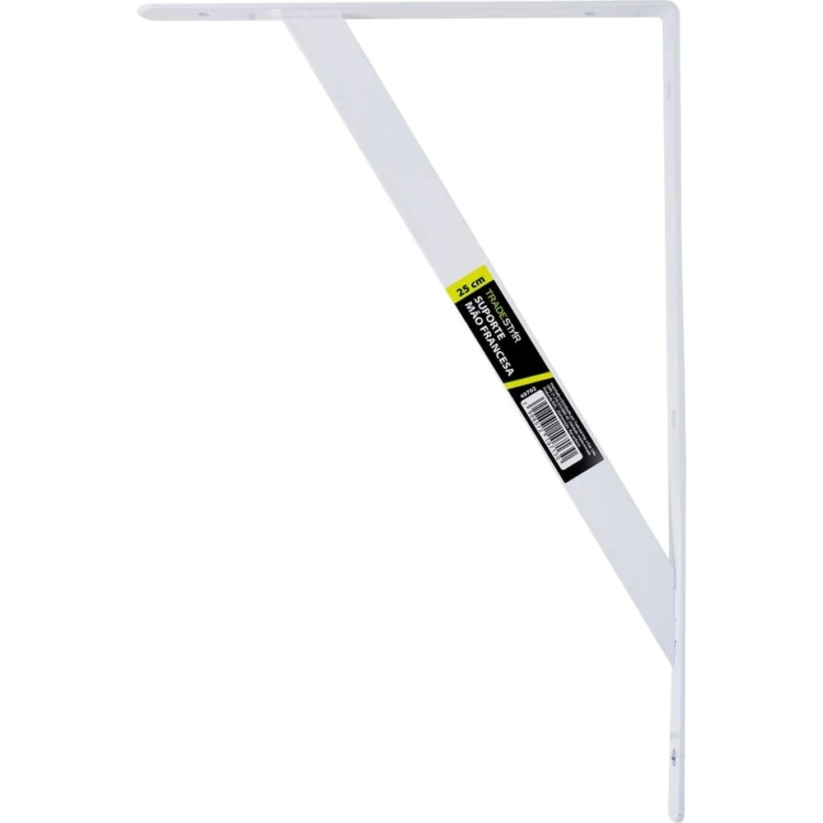 Mão Francesa 25 cm x 16 mm Tradestar Prateleira Branco SoldadoA Mão Francesa Tradestar 25 cm x 16 mm Branco Soldado é uma solução prática e resistente para a instalação de prateleiras em diversos ambientes. Fabricada em aço carbono de alta durabilidade e com acabamento em pintura eletrostática branca, proporciona resistência contra desgaste e corrosão, além de um visual discreto e elegante que combina com qualquer espaço.Seu formato em “L” com reforço soldado garante maior firmeza e capacidade de carga, permitindo a sustentação segura de prateleiras de madeira, MDF ou vidro, conforme a necessidade do projeto. Ideal para uso em residências, escritórios, comércios, garagens e oficinas, ajuda a organizar objetos e otimizar o espaço de forma funcional e estética. Além da resistência estrutural, a instalação é simples e eficiente, tornando este suporte um acessório indispensável para quem busca praticidade e confiabilidade na montagem de prateleiras.Especificações- Dimensões: 25 cm x 16 mm- Formato: “L” com reforço soldado- Material: Aço carbono- Acabamento: Pintura eletrostática branca- Indicação de uso: Suporte para prateleiras fixadas em paredesItens inclusos- 1 Suporte para Prateleira 25 cm x 16 mm Branco SoldadoGarantia- 03 meses com o Fabricante