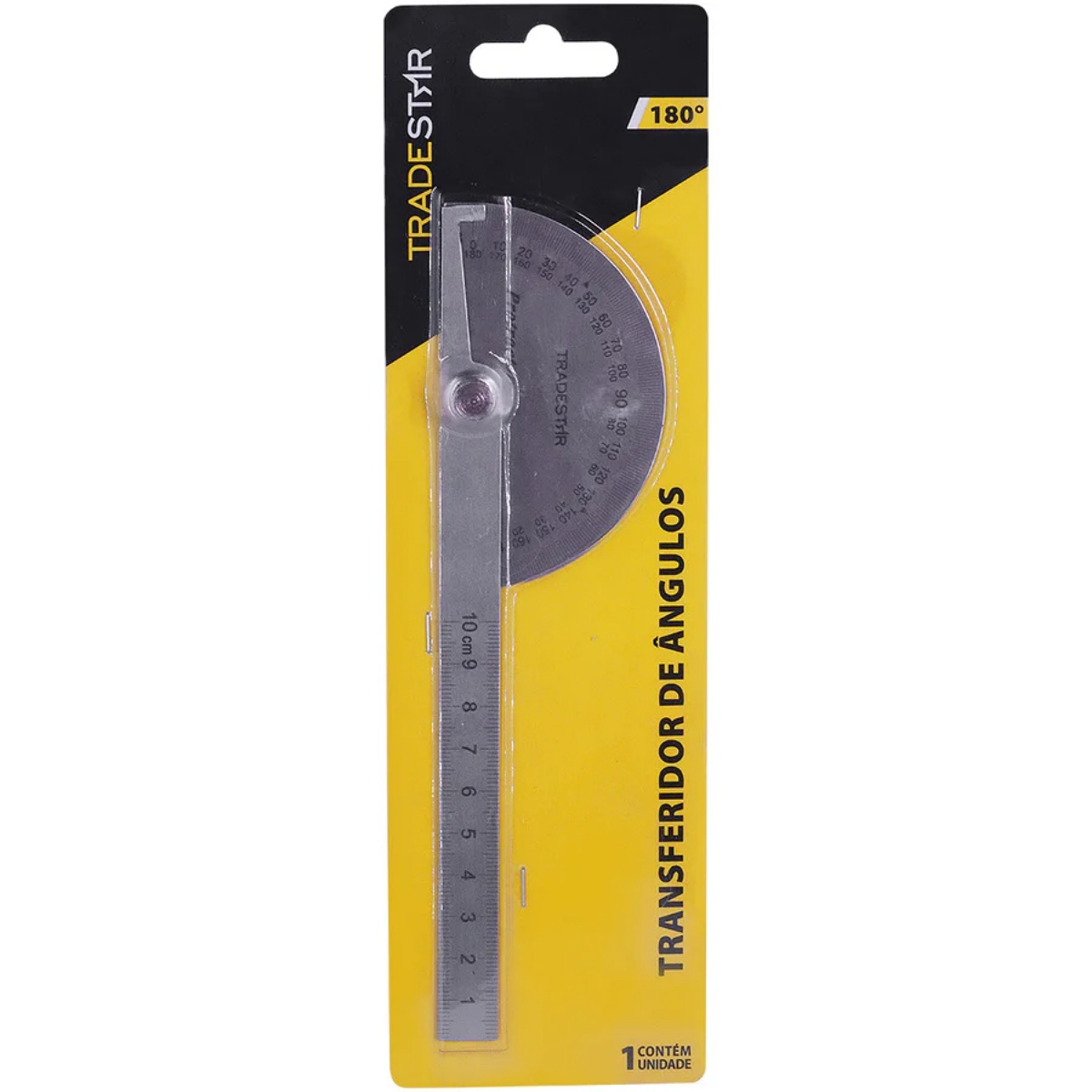 Transferidor de Ângulos Tradestar 0º até 180º Graus Aço InoxO Transferidor de Ângulos Tradestar, com graduação de 1° e escala de 0° a 180°, é a ferramenta ideal para medir e transferir ângulos com precisão em máquinas, moldes, peças de madeira ou metal. Fabricado em aço inoxidável de alta qualidade, proporciona durabilidade, resistência à corrosão e excelente precisão. É indicado para mecânicos, engenheiros, marceneiros e profissionais da construção civil que precisam de medições exatas em seus projetos, garantindo resultados confiáveis e repetíveis.Especificações- Escala: 0° a 180°- Graduação: 1°- Material: Aço Inox- Indicação de uso: Medição e transferência de ângulos em peças, moldes e máquinasItens inclusos- 1 Transferidor de Angulos 180 Graus Aço InoxGarantia- 03 meses com o Fabricante