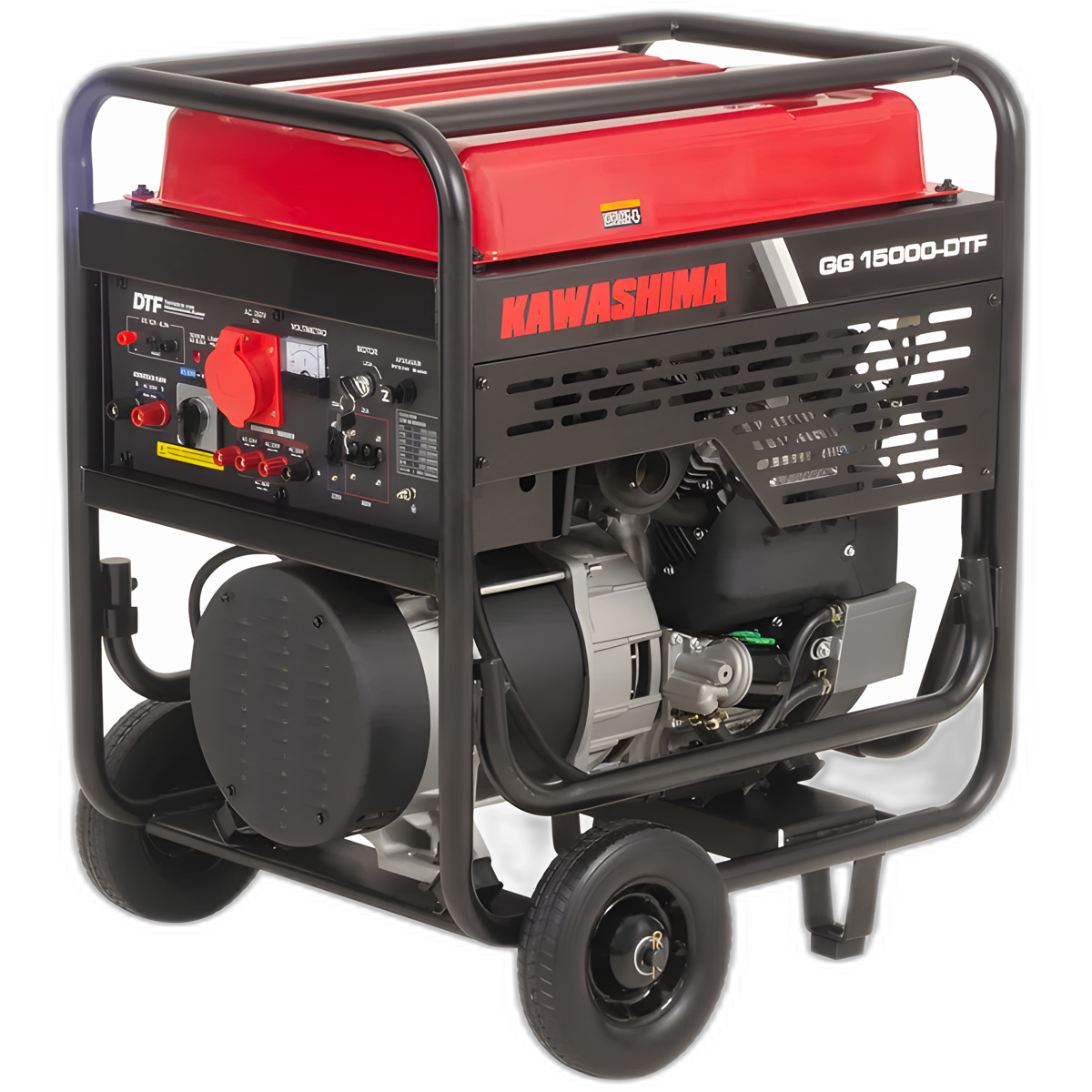Gerador a Gasolina Kawashima GG 15000-DTF: Potência Trifásica e Monofásica Total para Sua EnergiaO Gerador a Gasolina Kawashima GG 15000-DTF redefine a sua experiência com energia, oferecendo uma solução robusta e versátil para residências, comércios e pequenas indústrias. Com uma potência máxima impressionante de 15000W (18,75 kVA), este gerador de energia é a escolha ideal para quem busca autonomia e confiabilidade. Seu diferencial exclusivo, a tecnologia DTF, garante 100% da potência total, seja em operação trifásica (380V) ou monofásica (220V), sem perda de desempenho, adaptando-se perfeitamente às suas necessidades. Equipado com um motor Kawashima de dois cilindros e 744 cc, ele entrega a força necessária para alimentar equipamentos de alta demanda, desde ferramentas elétricas pesadas em canteiros de obras até sistemas de iluminação e refrigeração em eventos ou situações de emergência. A partida elétrica de 12V e o sistema AVR Digital asseguram um funcionamento suave, estável e seguro, protegendo seus aparelhos contra flutuações de tensão. Desfrute de longas horas de operação com o tanque de 45 litros e a eficiência do consumo de combustível. Garanta a continuidade de suas atividades com este gerador a gasolina de alta performance, projetado para durar e entregar energia onde você mais precisa.Especificações Modelo: GG 15000-DTF Tipo: Monofásico / Trifásico Potência máxima: 15000 W / 18,75 kVA Potência nominal: 13000 W / 16,25 kVA Frequência: 60 Hz Tensão: Trifásico: 380 V / Monofásico: 220 V (100%) Tensão nominal DC: 12V – 8,3A Motor: Kawashima, dois cilindros, 4T, gasolina, refrigerado a ar Cilindradas: 744 cc Potência máxima do motor: 26 HP Sistema de partida: Elétrico (12 V - 36 A) Regulador de tensão (AVR): Sim (AVR Digital) Capacidade do tanque de combustível: 45 L Consumo de combustível: 400 g/kWh Óleo lubrificação: SAE 15W-40 Capacidade do cárter: 1,6 L Filtro de ar: Seco Vela de ignição: F7TC Carregador de bateria: Sim Voltímetro: Sim Nível de ruído [dB(A)@7m]: 100 dB (A) Dimensões (equipamento): 800 x 630 x 900 mm Dimensões da embalagem: 795 x 625 x 810 mm Dimensões do suporte da bateria: 135 x 220 mm Peso líquido: 190 kg Peso bruto: 230 kgItens Inclusos 1x Gerador a Gasolina Kawashima GG 15000-DTF 1x Manual de instruçõesPerguntas Frequentes (FAQ) Pergunta: Qual a potência máxima de saída deste gerador?Resposta: A potência máxima é de 15000 W (ou 18,75 kVA). Pergunta: Ele pode ser usado em redes trifásicas e monofásicas?Resposta: Sim, o gerador Kawashima GG 15000-DTF possui tecnologia DTF que entrega 100% da potência total tanto em 380V trifásico quanto em 220V monofásico, não simultaneamente. Pergunta: O gerador acompanha bateria para partida elétrica?Resposta: Não, o equipamento não acompanha bateria para o sistema de partida elétrica. Você precisará adquirir uma separadamente com as dimensões indicadas (suporte de 135 x 220 mm). Pergunta: Qual o tipo de partida do motor?Resposta: O sistema de partida é elétrico, com voltagem de 12 V - 36 A. Pergunta: Este gerador possui regulador de tensão?Resposta: Sim, ele vem equipado com um regulador de tensão AVR Digital para maior estabilidade e segurança.