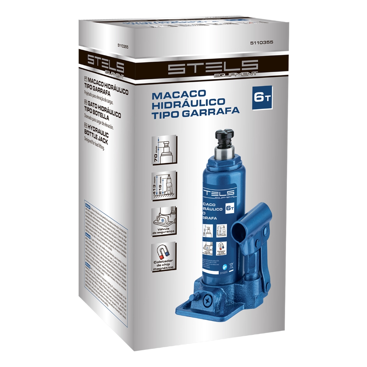 Macaco Hidráulico Garrafa 6T Elevação 216-413mm Aço Resistente Stels 5110355