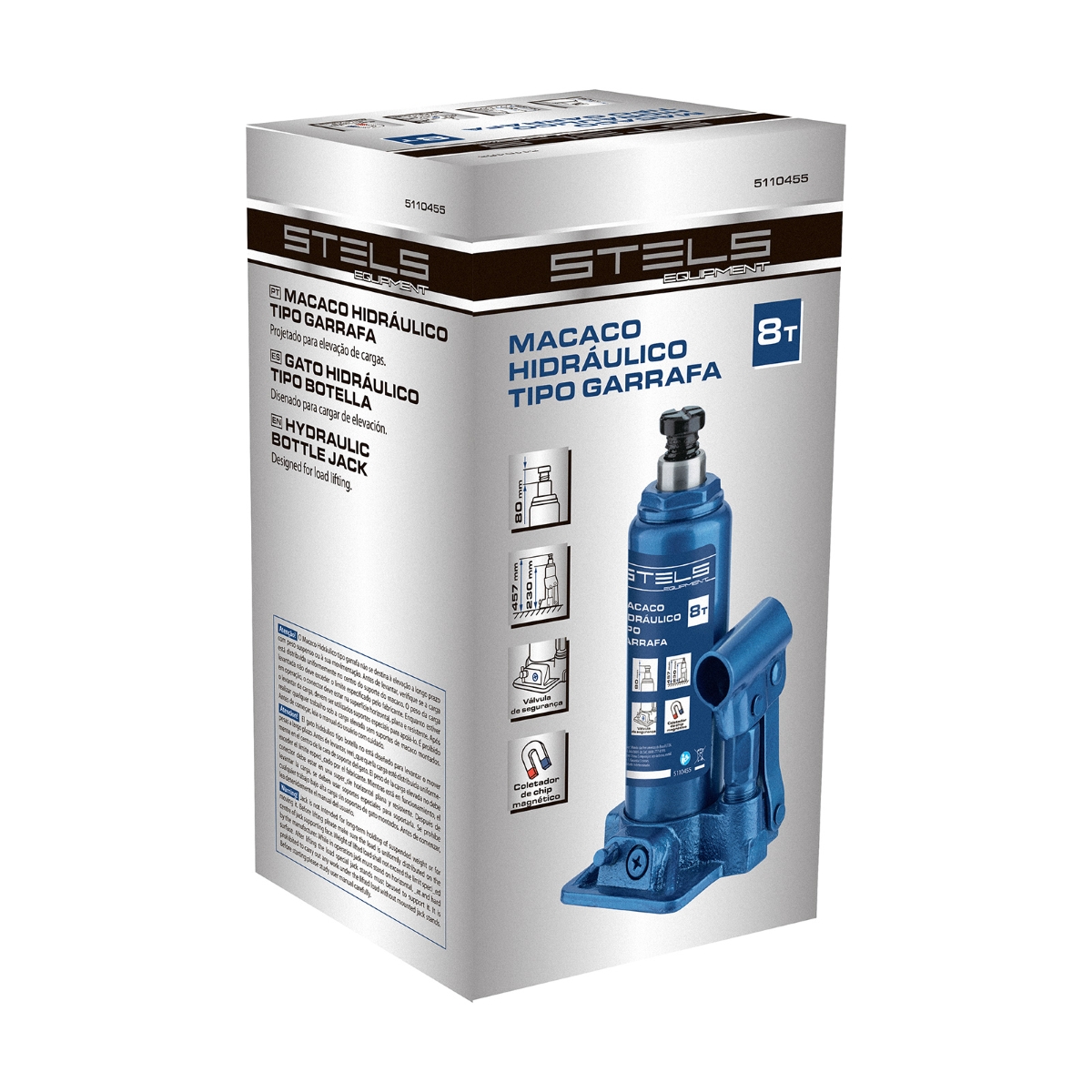 Macaco Hidráulico Tipo Garrafa 8 Toneladas Stels: Elevação Segura e Eficiente Precisa de um macaco hidráulico robusto e confiável para suas tarefas pesadas? O Macaco Hidráulico Tipo Garrafa Stels 5110455, com capacidade de 8 toneladas, é a solução ideal. Projetado para oferecer segurança e durabilidade, este macaco é perfeito para oficinas, construção, reparos automotivos e muito mais. Sua altura de elevação ajustável, de 230 a 457 mm, permite o levantamento de uma ampla variedade de cargas com facilidade e precisão. A válvula de segurança integrada garante a proteção contra sobrecargas, enquanto o coletor magnético interno prolonga a vida útil do equipamento, retendo partículas metálicas. O parafuso de ajuste retrátil facilita o alinhamento e a adaptação às necessidades específicas de cada trabalho, tornando o Macaco Stels uma ferramenta indispensável para profissionais e entusiastas do 'faça você mesmo'. Invista em qualidade e segurança com o Macaco Hidráulico Stels! Especificações Classe de Produto: Semi-profissional Material do Corpo: Aço Número de Degraus: 1 Tipo de Mecanismo: Hidráulico Capacidade: 8 Toneladas Altura de Levantamento: 457 mm Altura Mínima de Elevação: 230 mm Curso de Trabalho: 227 mm Diâmetro da Haste do Primeiro Estágio: 38 mm Itens Inclusos Macaco Hidráulico Tipo Garrafa Stels 5110455 Perguntas Frequentes (FAQ) Pergunta: Qual a capacidade máxima de carga deste macaco?Resposta: A capacidade máxima de carga do Macaco Hidráulico Stels 5110455 é de 8 toneladas. Pergunta: Qual a faixa de altura de elevação?Resposta: A altura de elevação varia de 230 mm a 457 mm. Pergunta: Este macaco possui algum recurso de segurança?Resposta: Sim, ele possui uma válvula de segurança que impede a elevação de cargas superiores à capacidade máxima. Pergunta: Qual a garantia do produto?Resposta: Garantia legal: 90 dias Pergunta: O macaco é adequado para qual tipo de veículo?Resposta: O macaco é adequado para caminhões e outros veículos pesados.