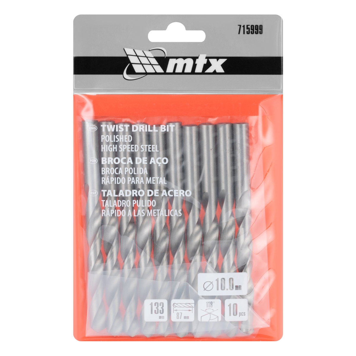 Broca Aço Rápido Standard 10mm Polida 10pcs MTX Metal HSS 118°