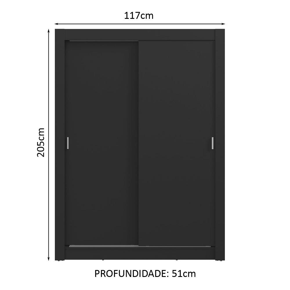 Guarda-Roupa Solteiro 2 Portas de Correr Preto Milano Madesa